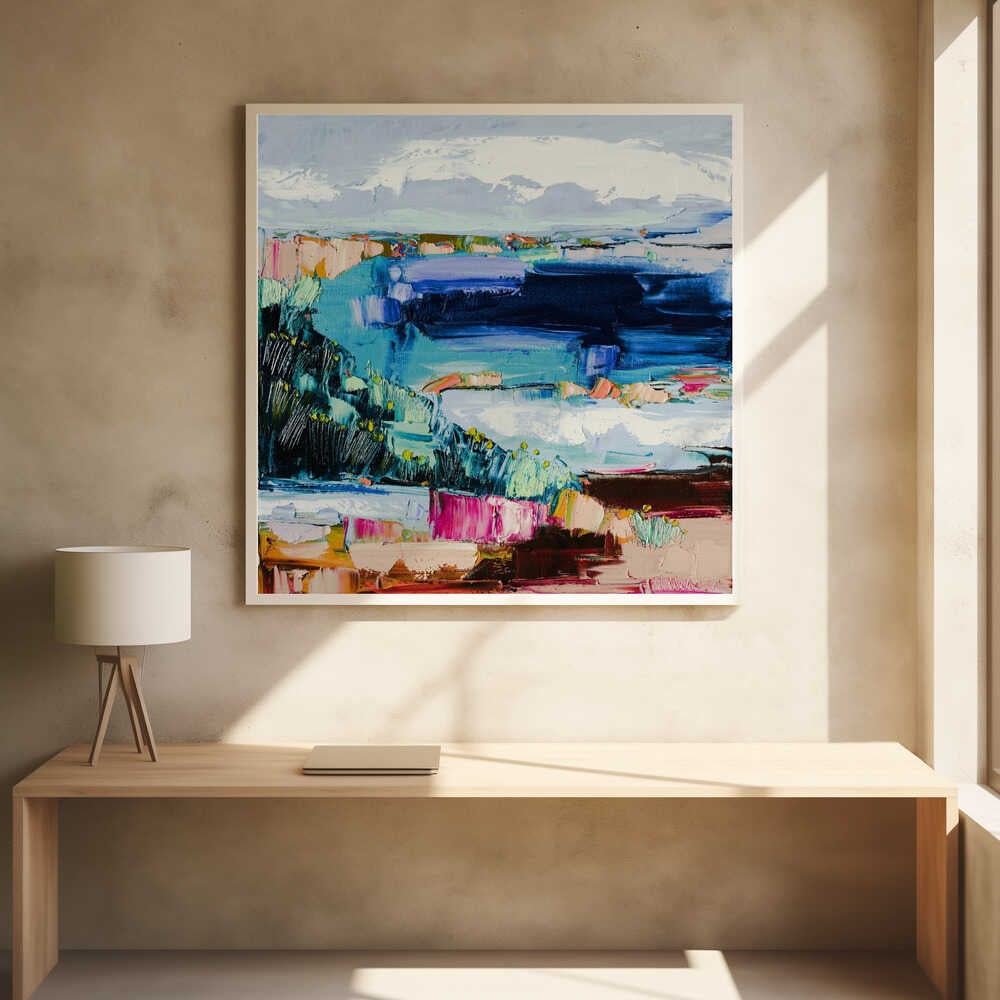 Vibrant Abstract Landscape - Square Stretched Canvas, Poster or Fine Art Print by Angela Hawkey