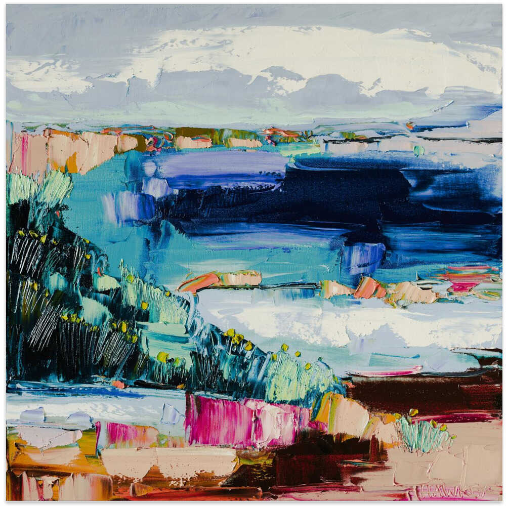 Vibrant Coastal View - Square Stretched Canvas, Poster or Fine Art Print by Angela Hawkey