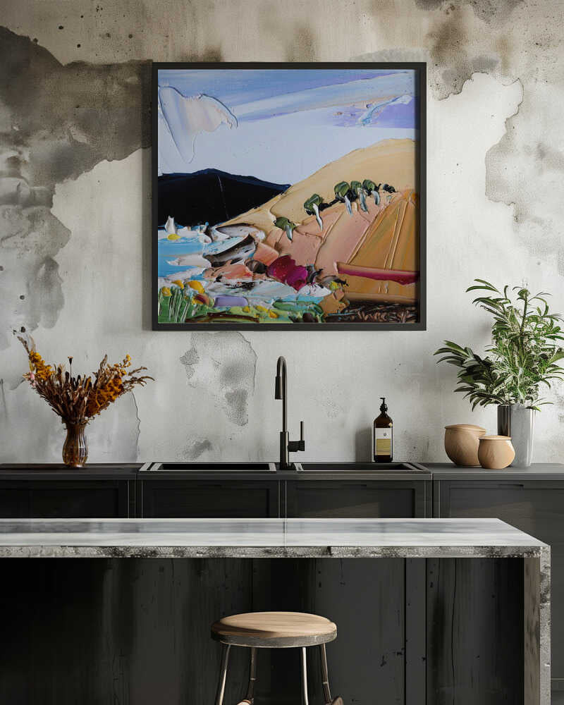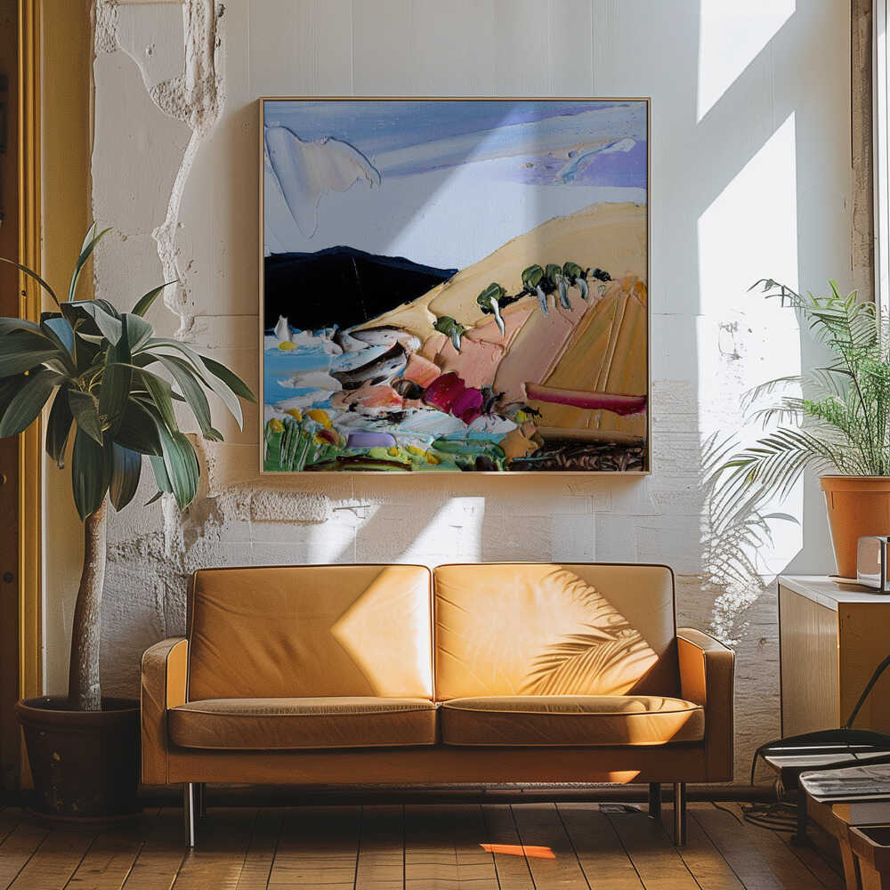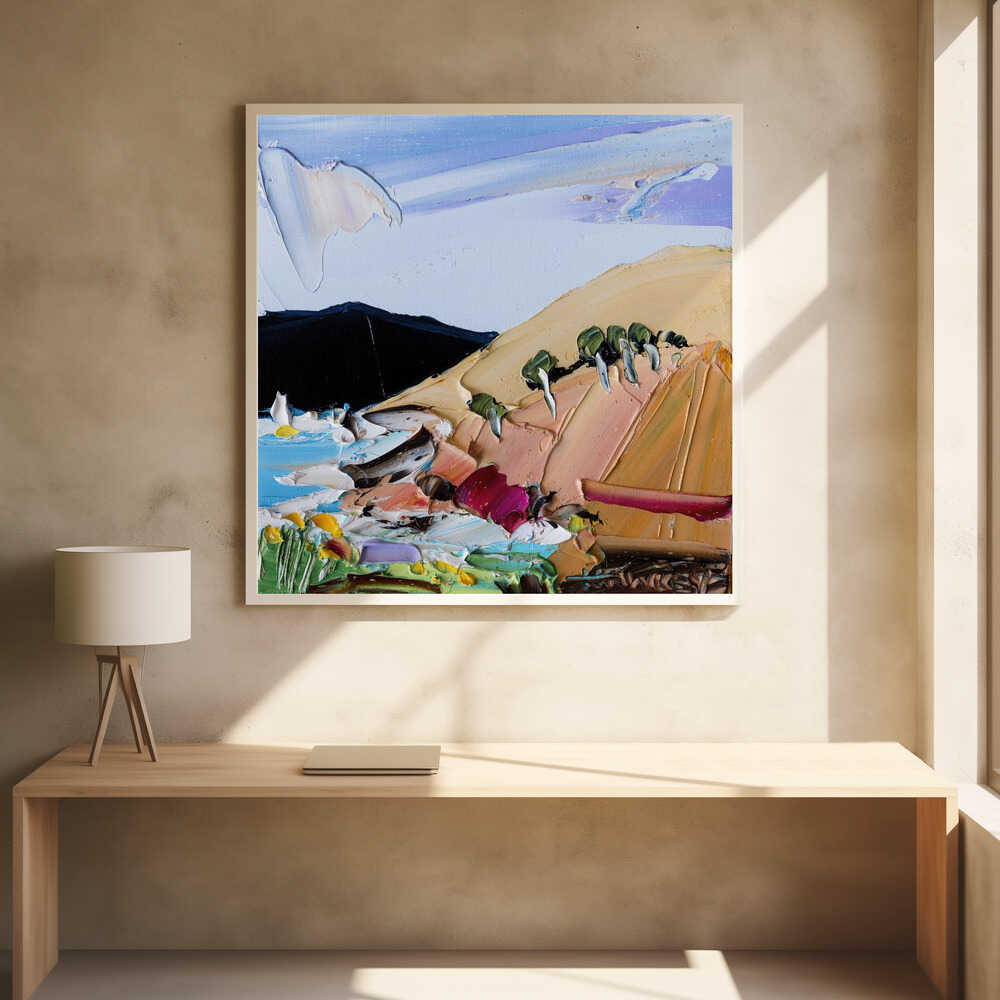 Vibrant Seaside Hills - Square Stretched Canvas, Poster or Fine Art Print by Angela Hawkey