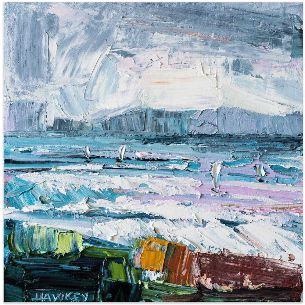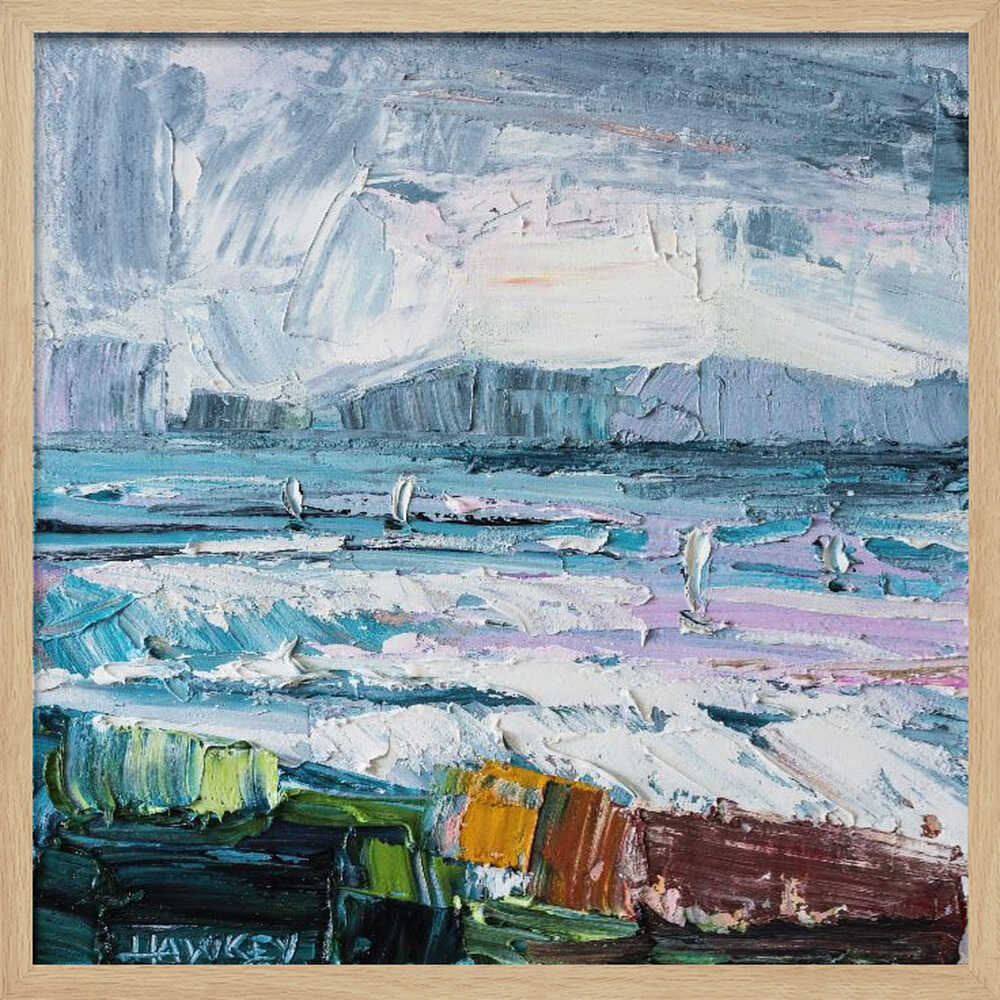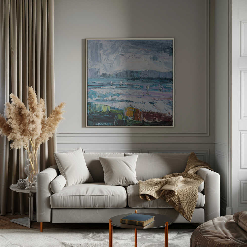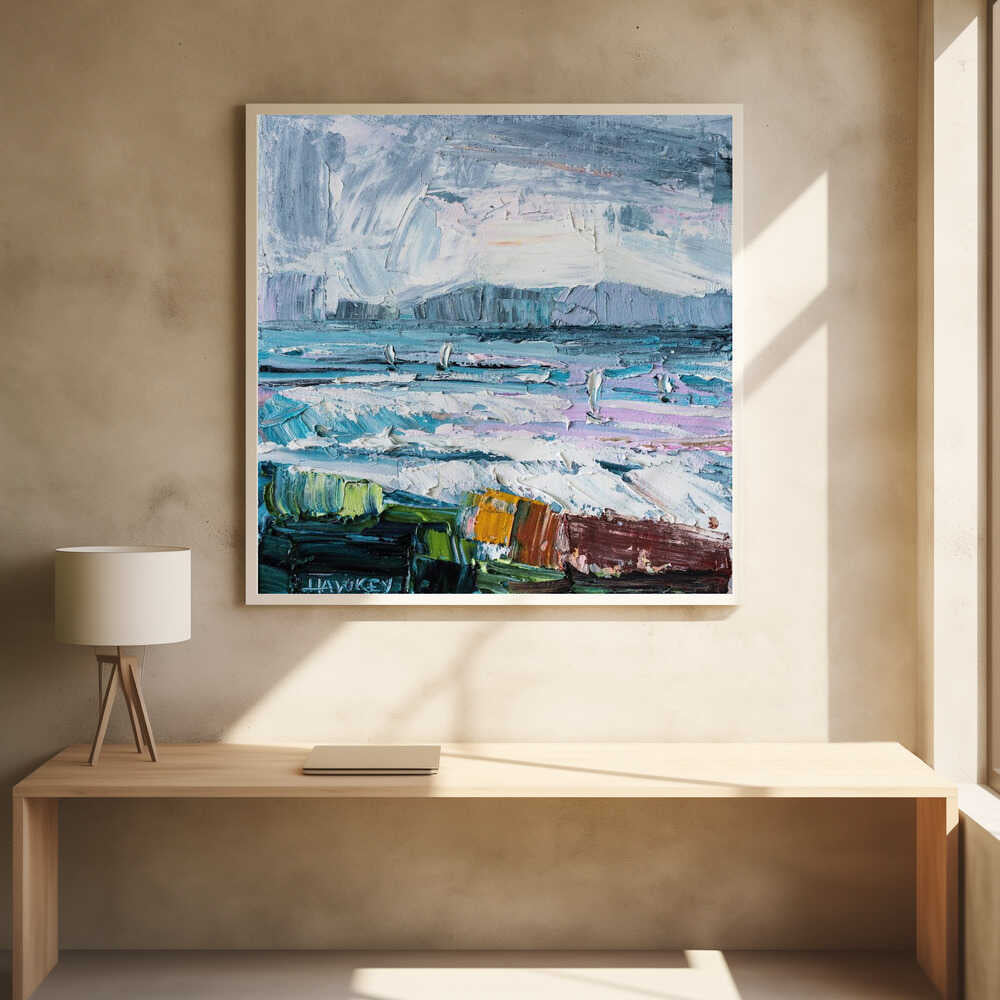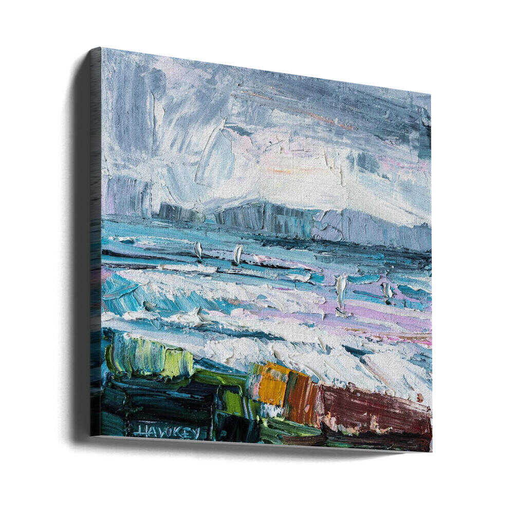 Colorful Textured Seascape - Square Stretched Canvas, Poster or Fine Art Print by Angela Hawkey