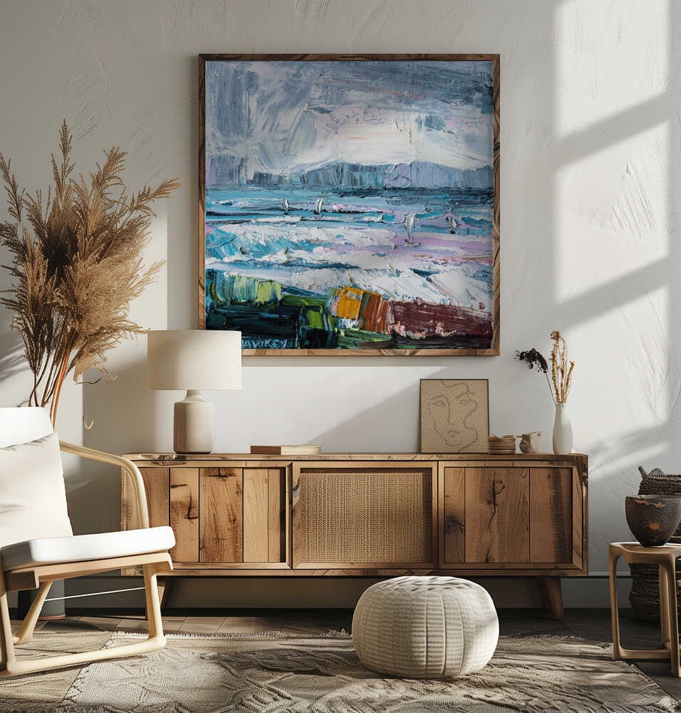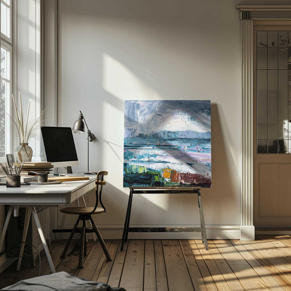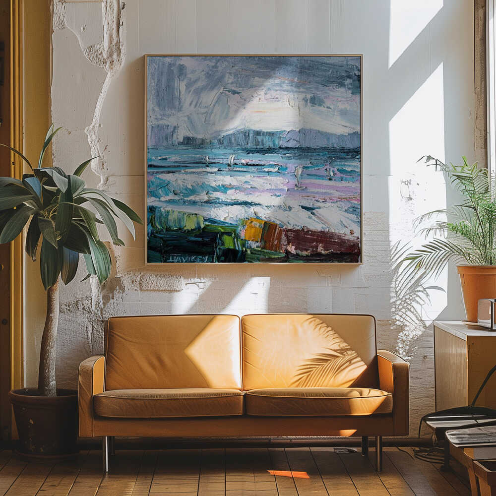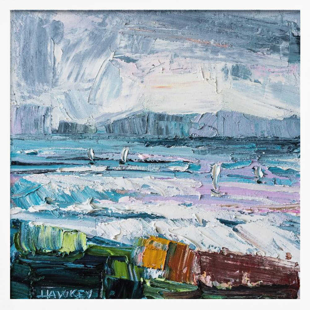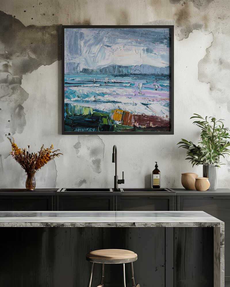 Colorful Textured Seascape - Square Stretched Canvas, Poster or Fine Art Print by Angela Hawkey