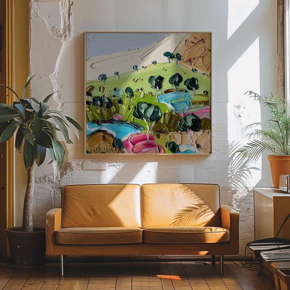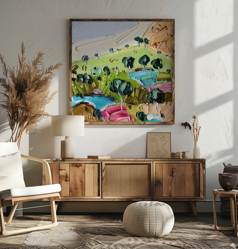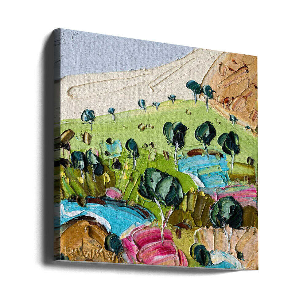 Vibrant Textured Landscape - Square Stretched Canvas, Poster or Fine Art Print by Angela Hawkey