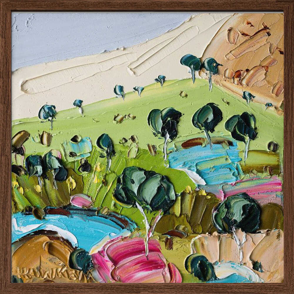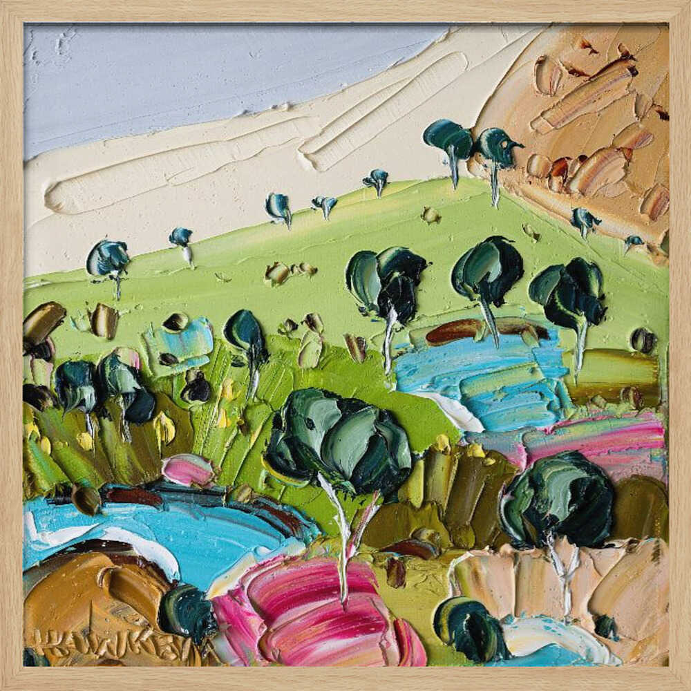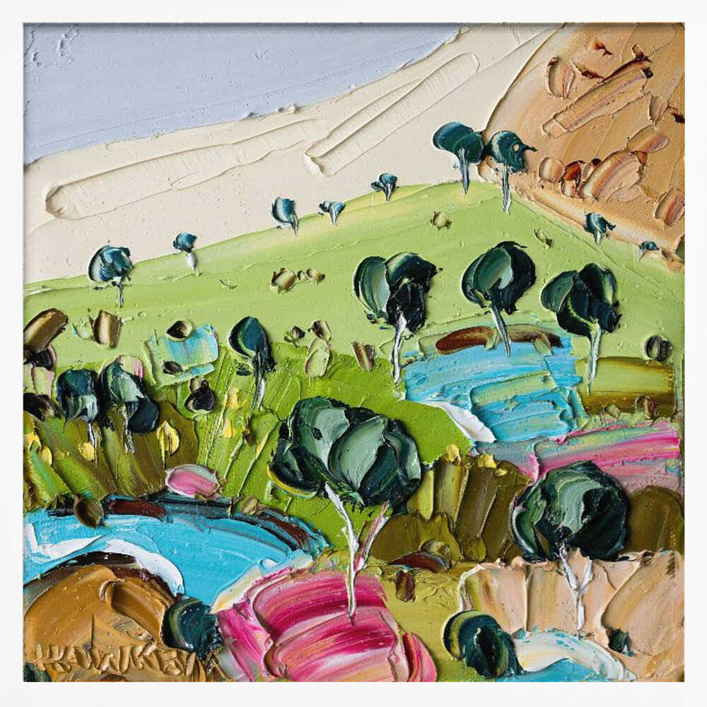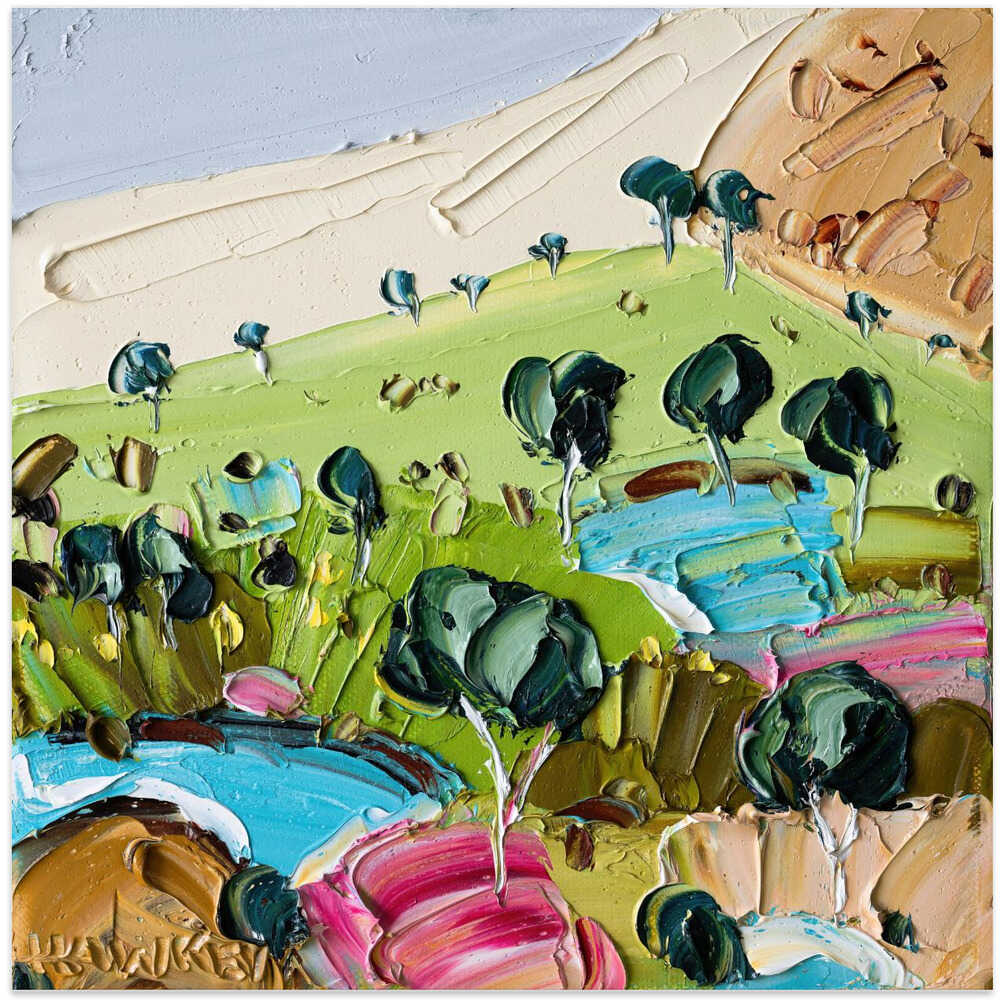 Impasto Countryside Landscape - Square Stretched Canvas, Poster or Fine Art Print by Angela Hawkey