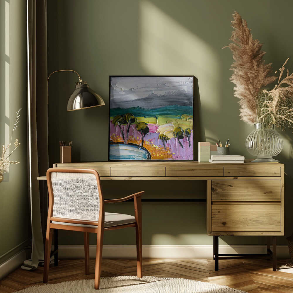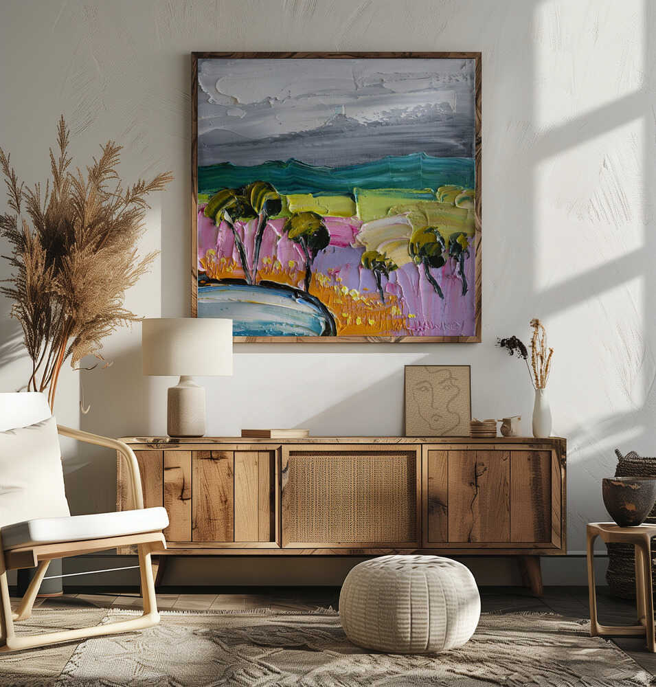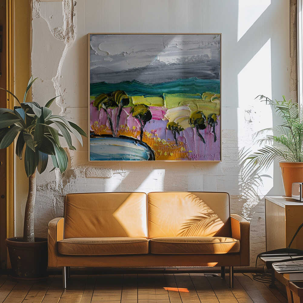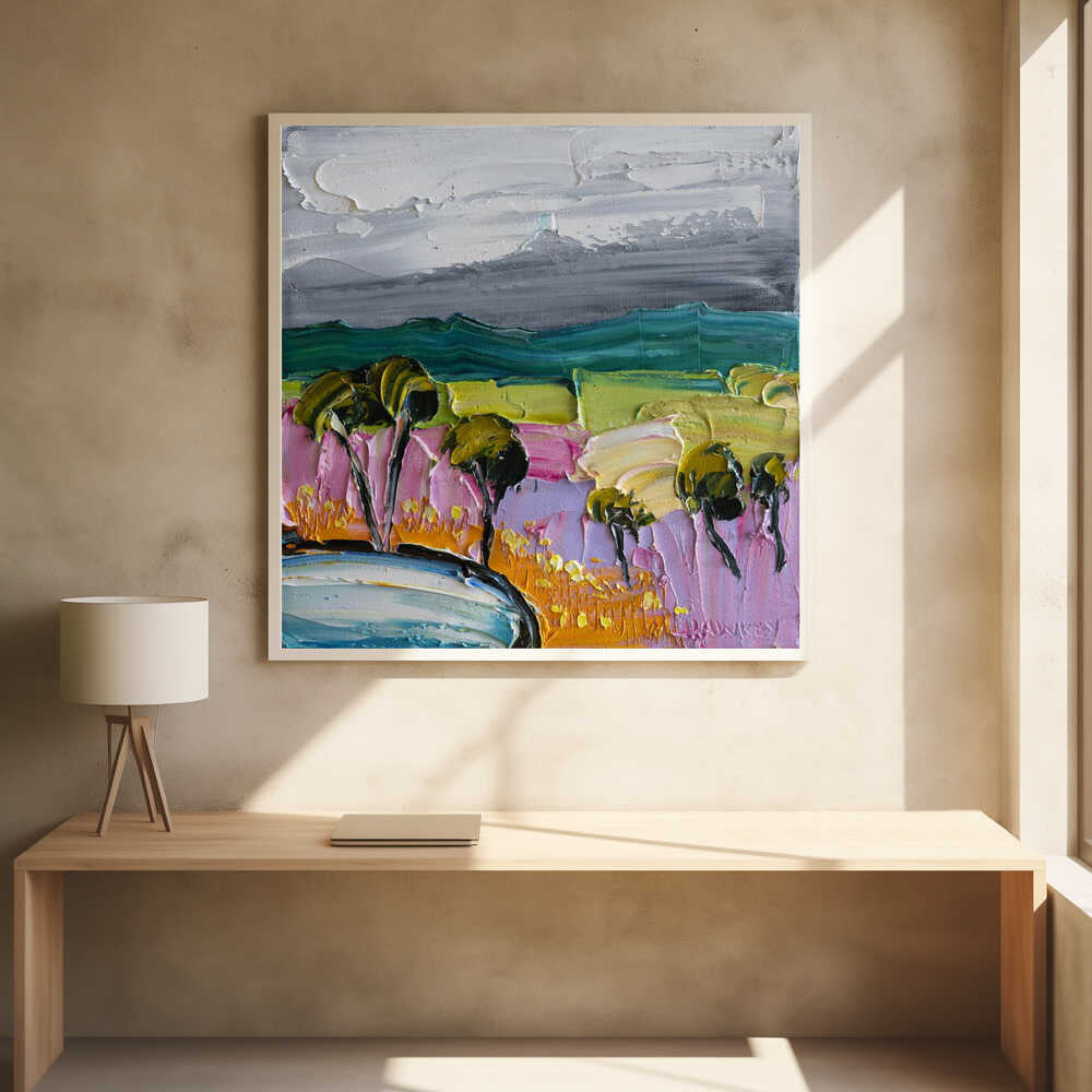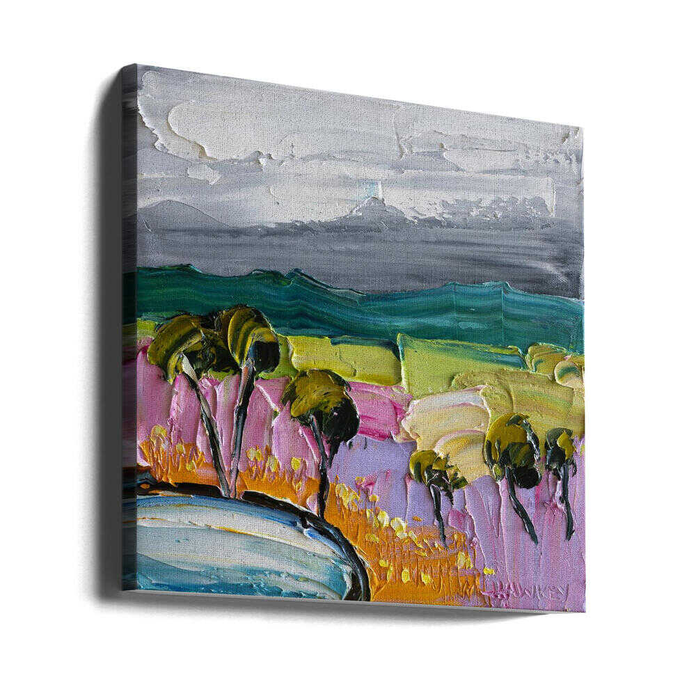 Vibrant Textured Landscape - Square Stretched Canvas, Poster or Fine Art Print by Angela Hawkey