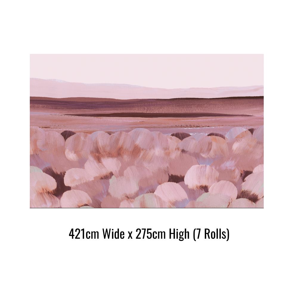 Transform your walls into a work of art with this peel and stick wallpaper mural, featuring a softly painted landscape in warm peach and deep burgundy tones. The hand-painted effect adds depth and texture, creating a serene yet dramatic backdrop that feels both modern and timeless.