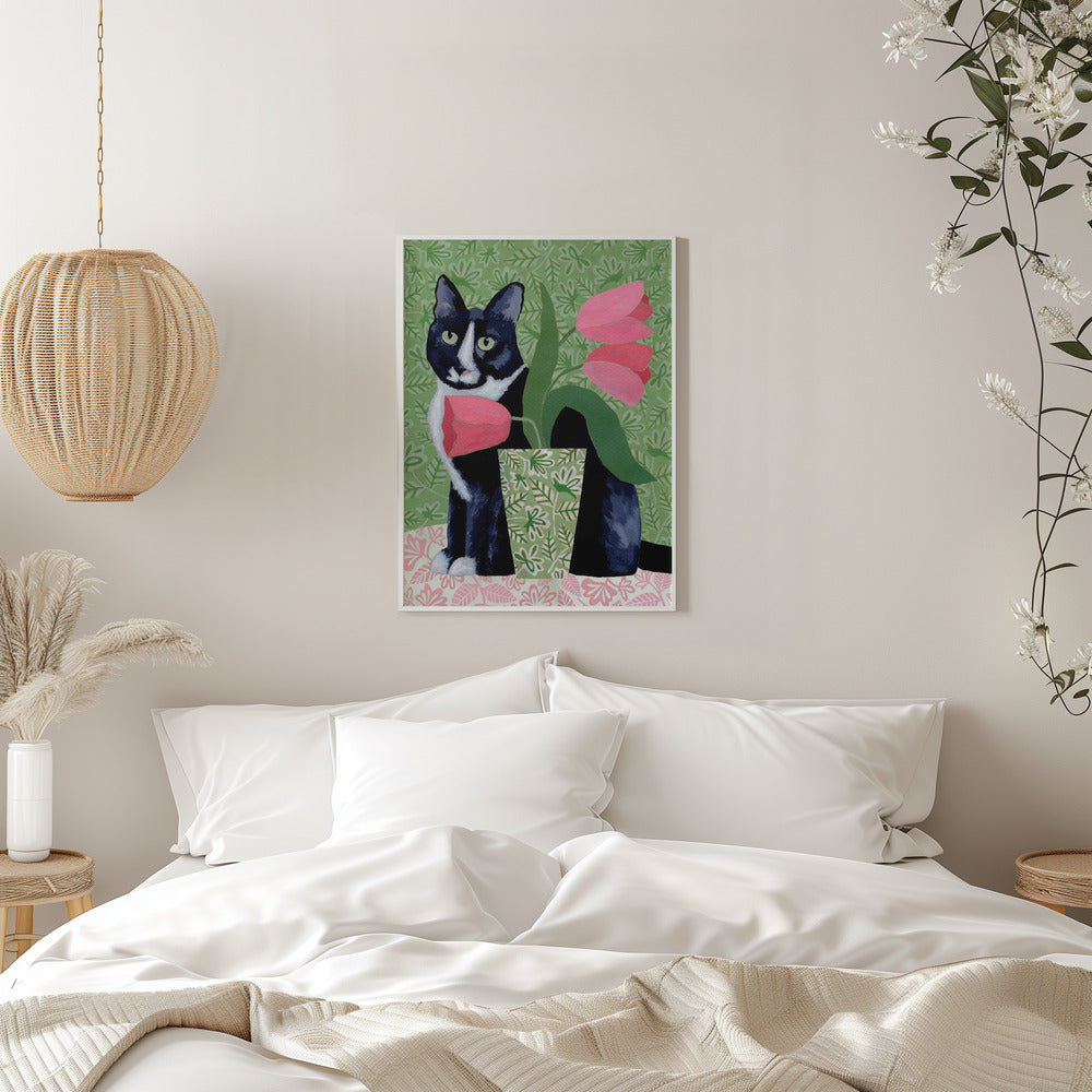 Explore our many print options for Barry With Pink Tulips And Pattern by artist Susan Black.