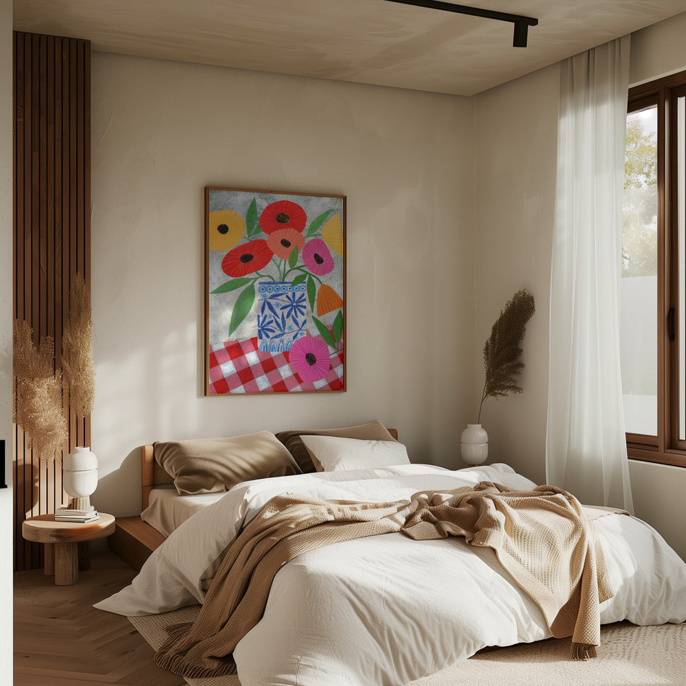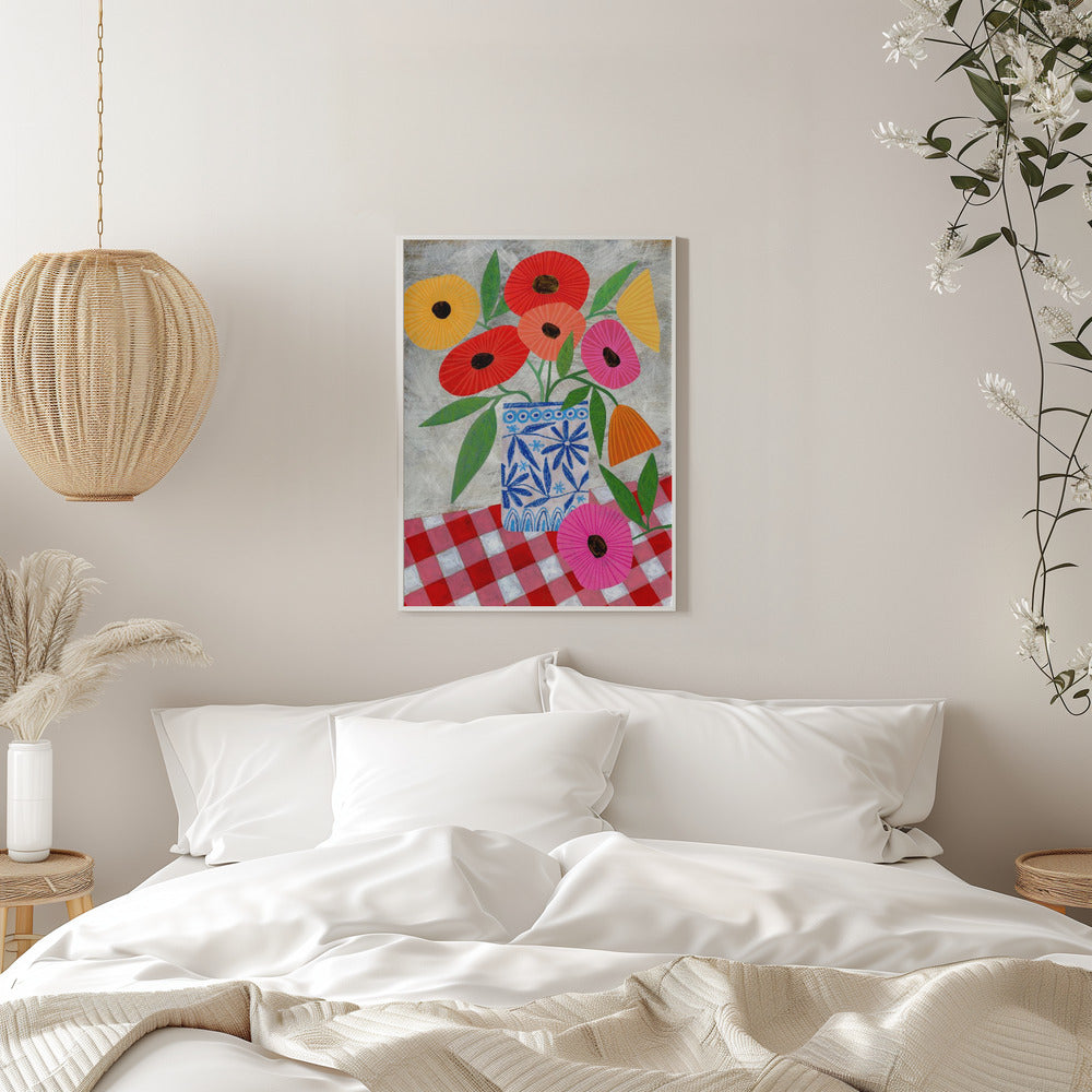Explore our many print options for Poppies In A Patterned Vase by artist Susan Black.