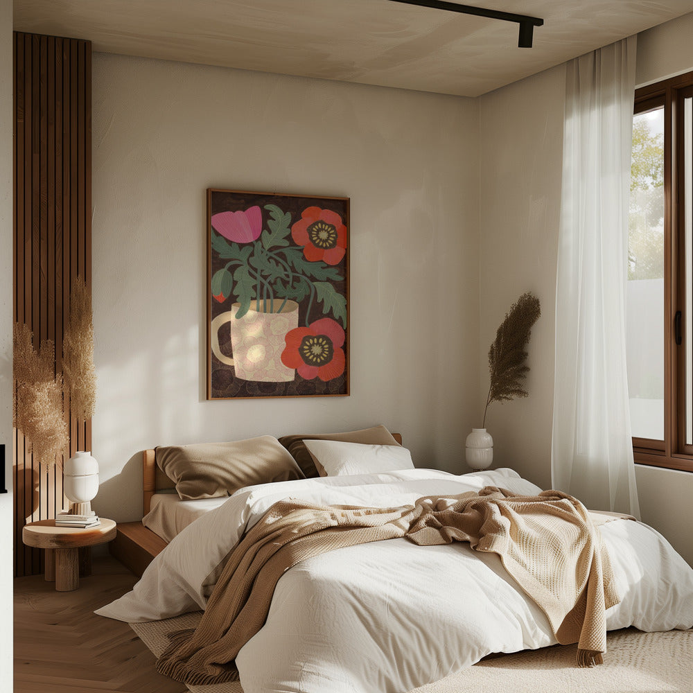Explore our many print options for Red Poppies In A Mug by artist Susan Black.