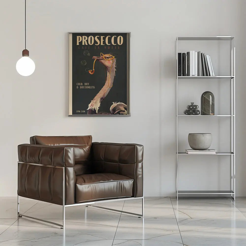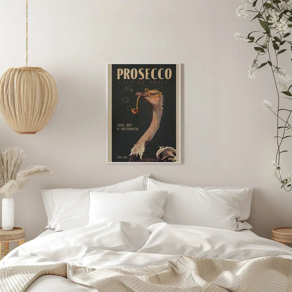 Explore our many print options for Cute Art Deco Prosecco Poster Of An Ostrich by artist The Whiskey Ginger.