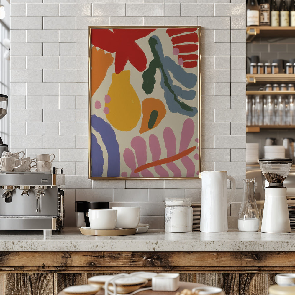Framed Art Prints: Our framed art prints are printed onto a good quality textured art paper. A white border surrounds the design. A solid timber frame in one of four colours and a plexiglass front complete the piece.