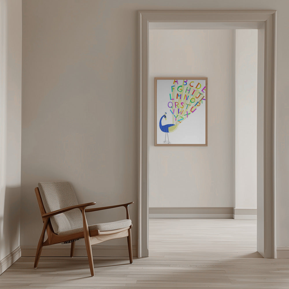 Explore our many print options for Beautiful Peacock with Alphabet Letters in Plume by artist Carla Daly.