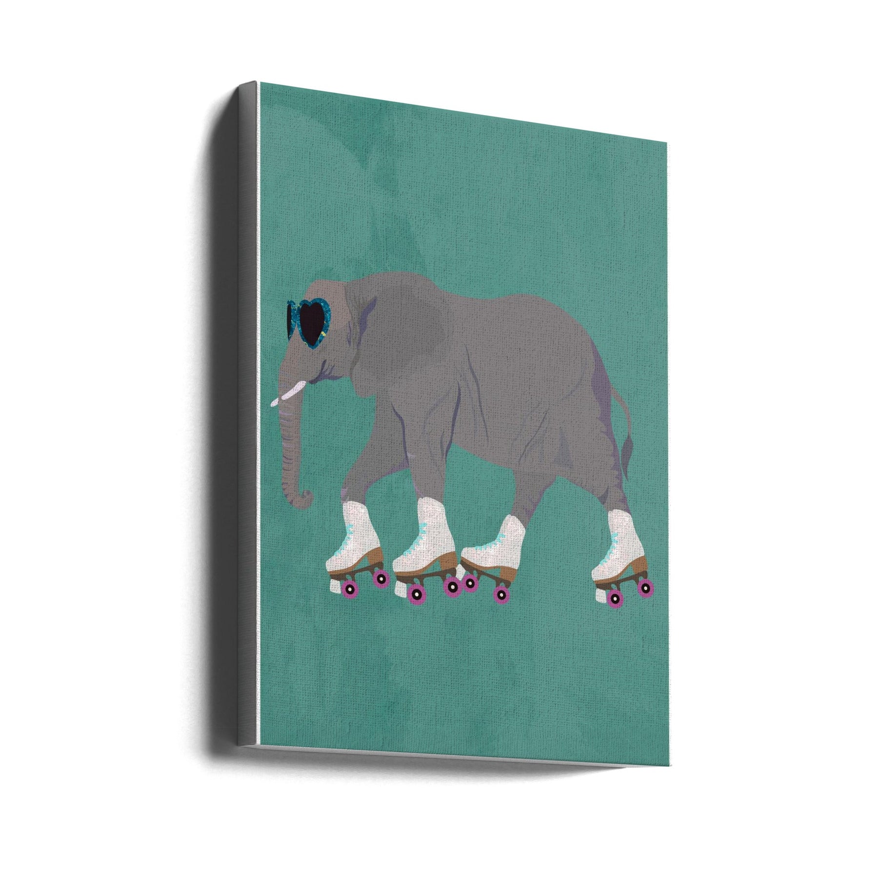 Explore our many print options for Elephant Rollerskating teal by artist Sarah Manovski.