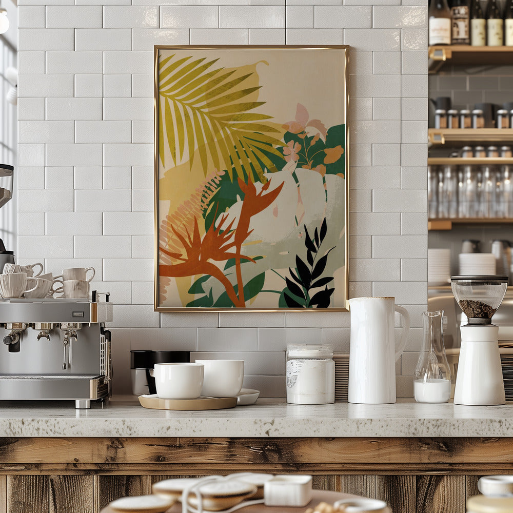 Framed Art Prints: Our framed art prints are printed onto a good quality textured art paper. A white border surrounds the design. A solid timber frame in one of four colours and a plexiglass front complete the piece.