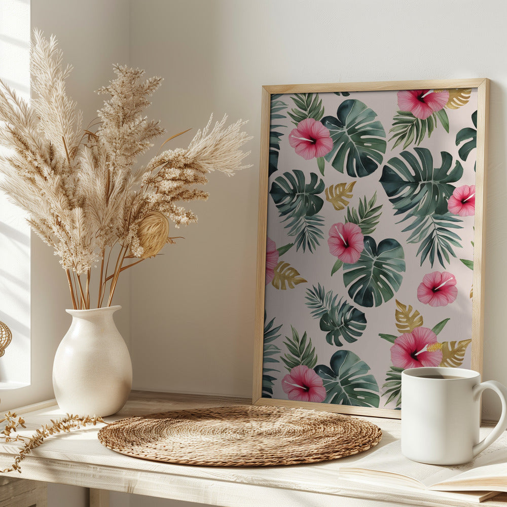 Explore our many print options for Monstera and Hibiscus Pattern by artist Kintsugi99.
