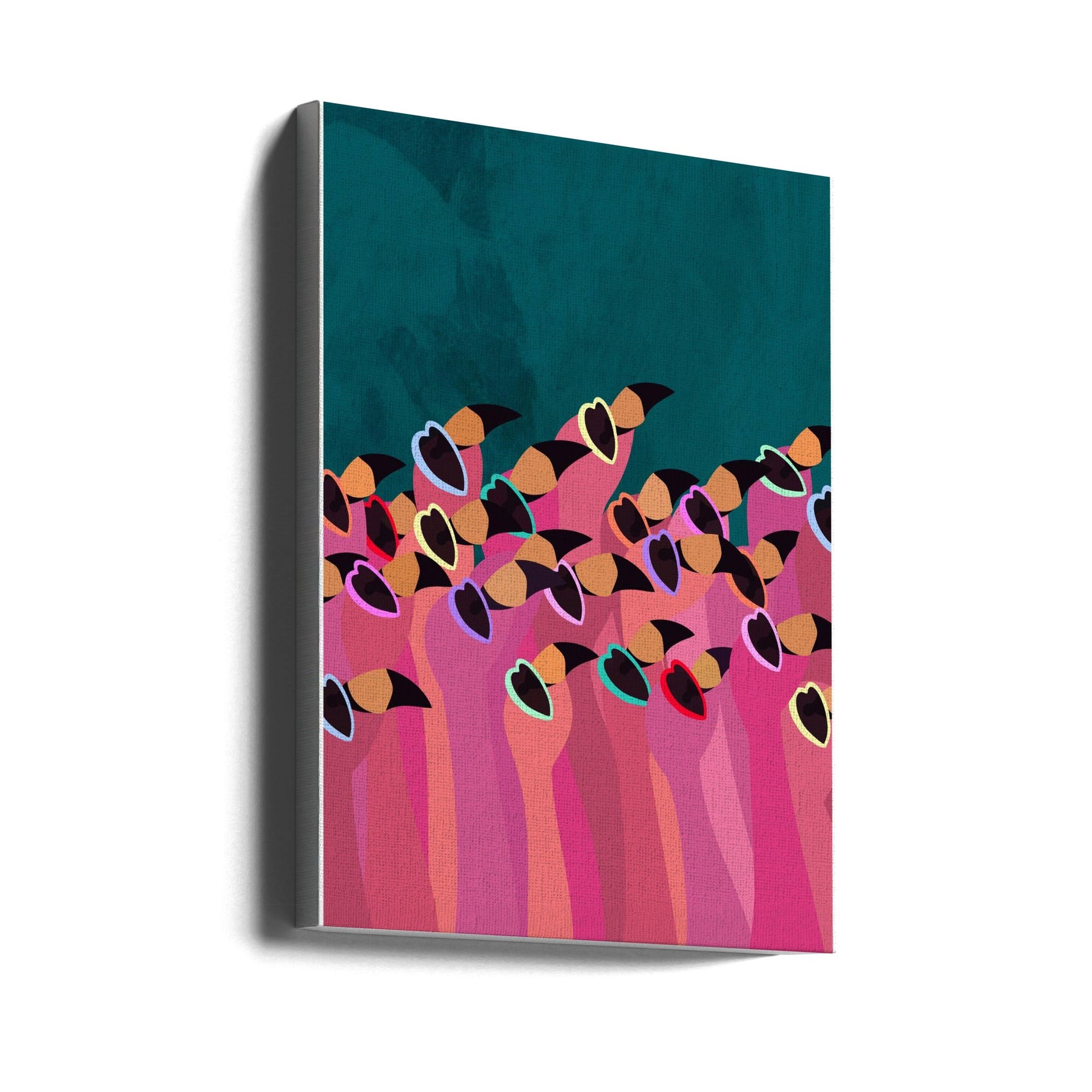 Explore our many print options for Flock flamingo turquoise by artist Sarah Manovski.