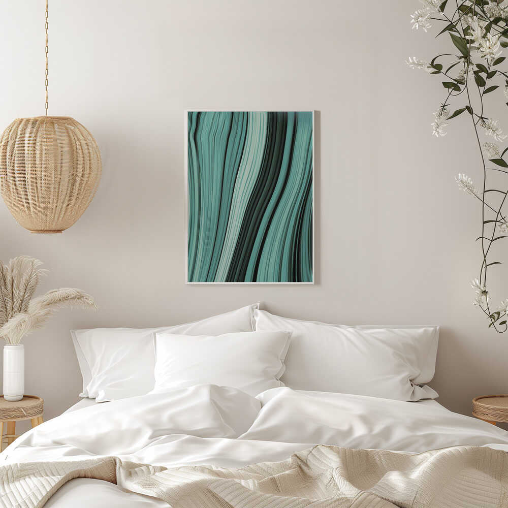 Flowing Teal Waves - Stretched Canvas, Poster or Fine Art Print