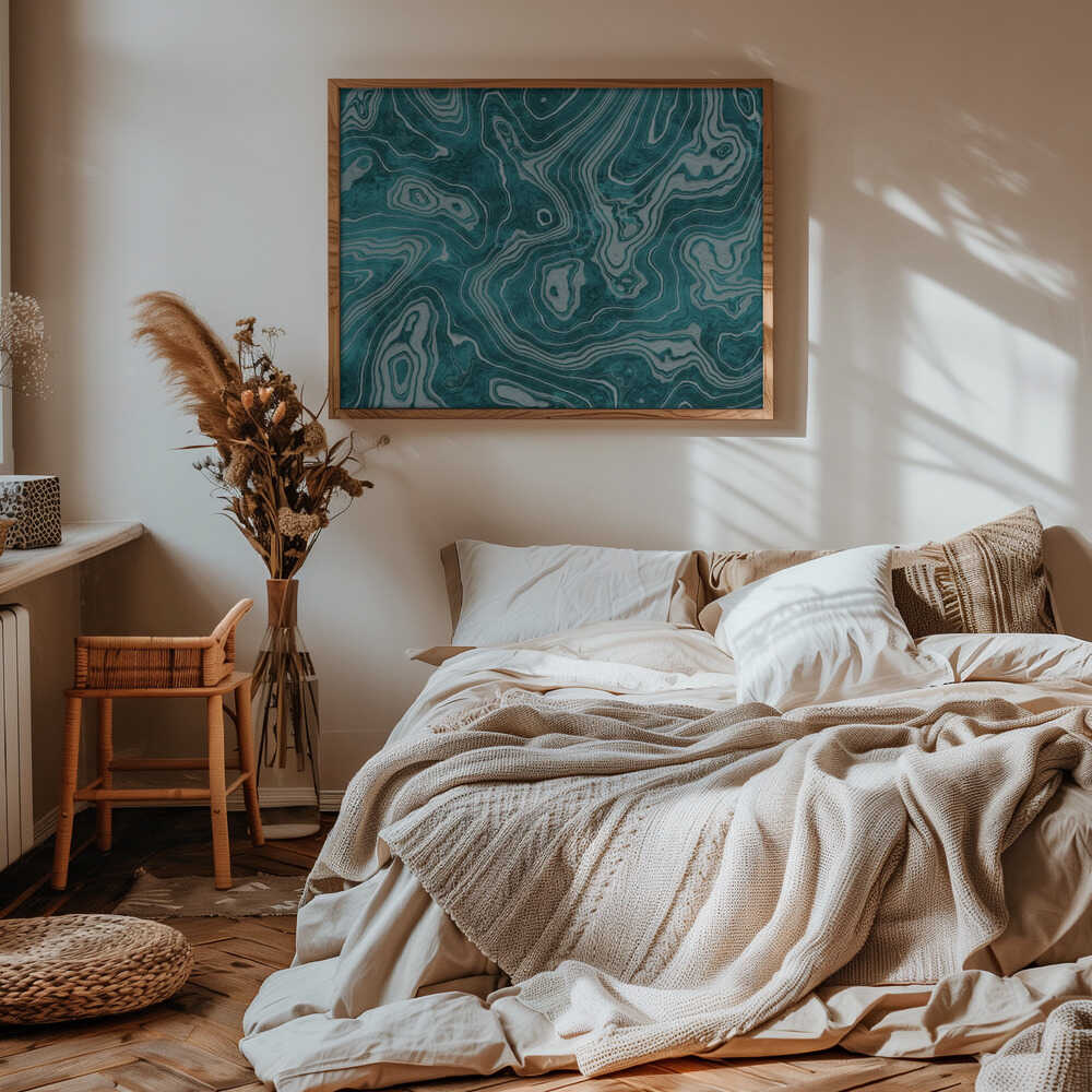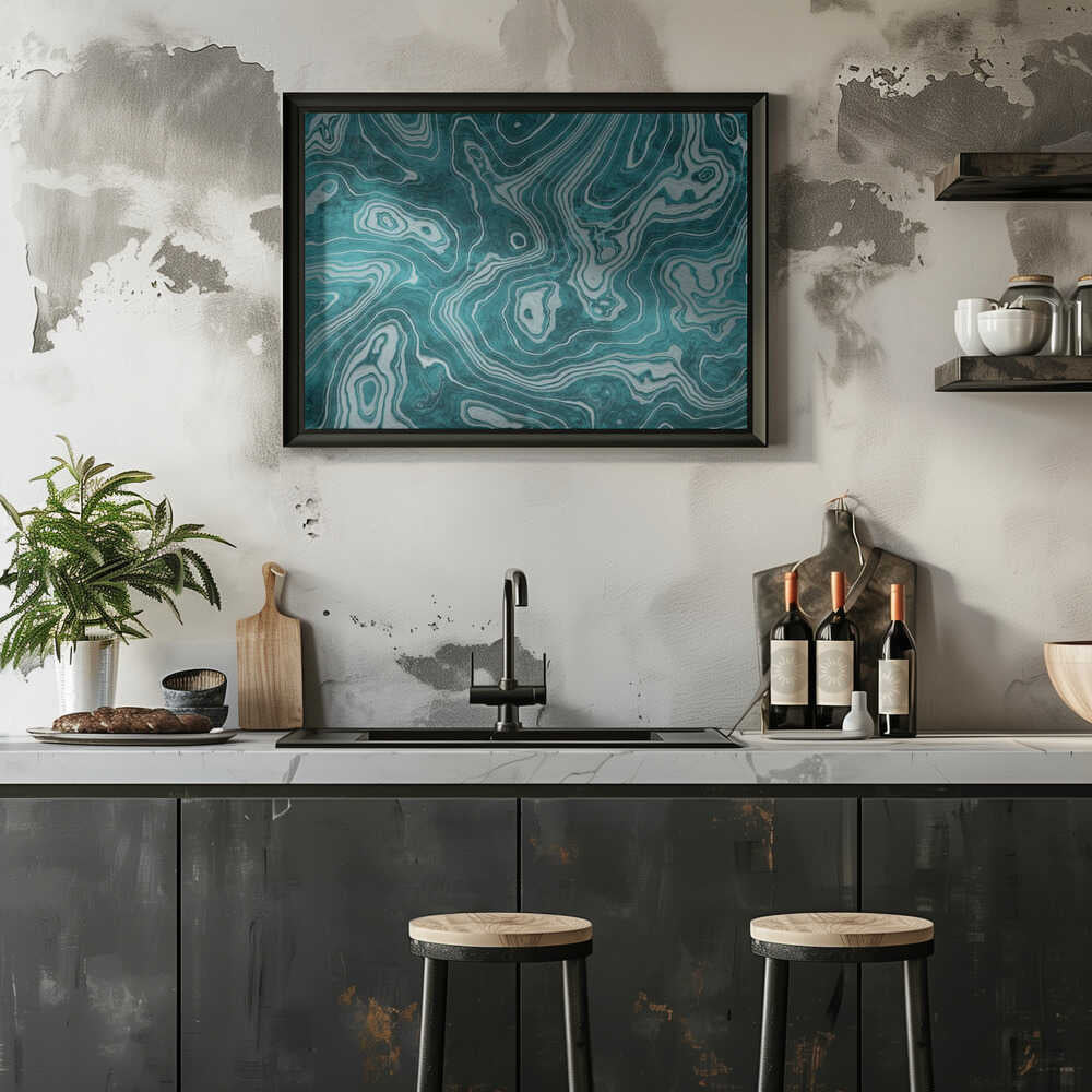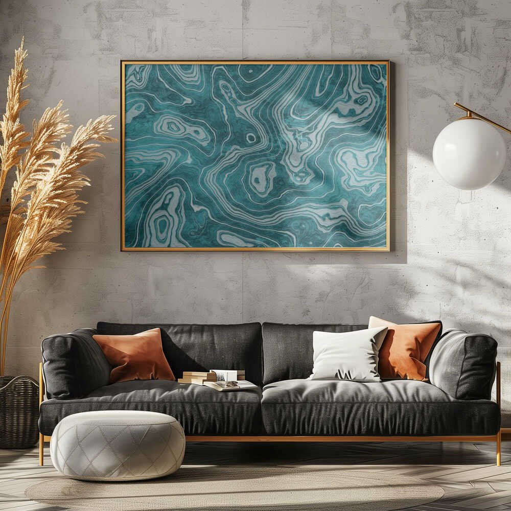 Teal Marble Swirls - Stretched Canvas, Poster or Fine Art Print