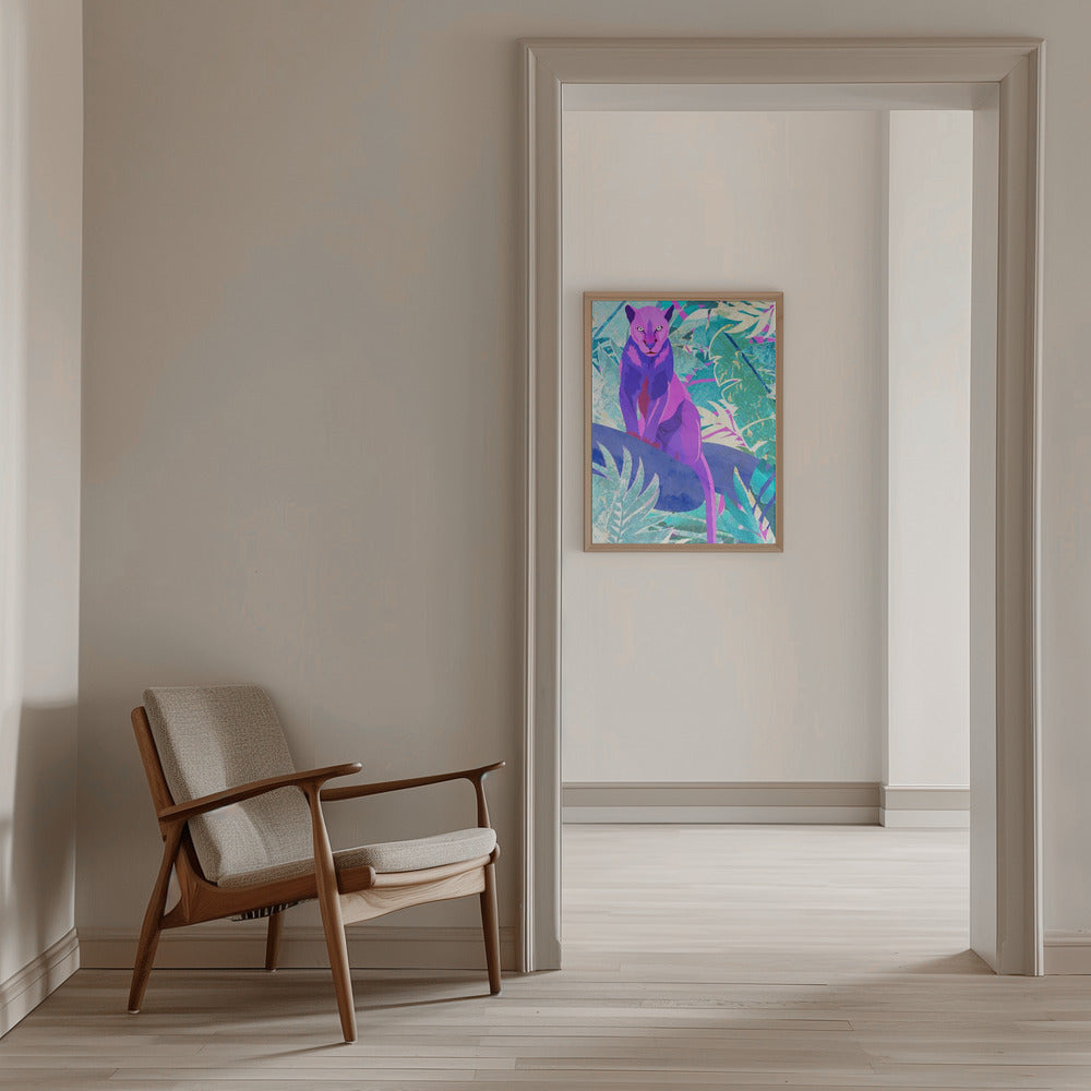 Explore our many print options for Pink Panther in the neon jungle by artist Sarah Manovski.