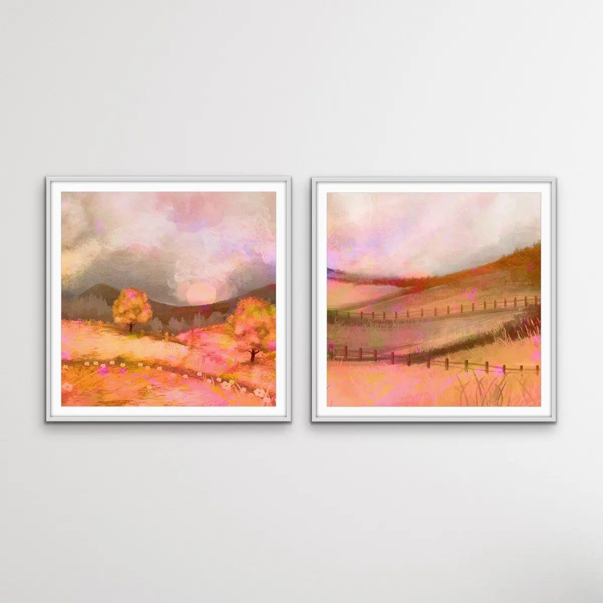 Looking for a pop of contemporary colour? This gorgeous set features an on-trend combo of citrus infused shades - pinks, oranges and browns. This two piece landscape set can be sold separately on request.