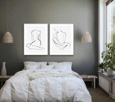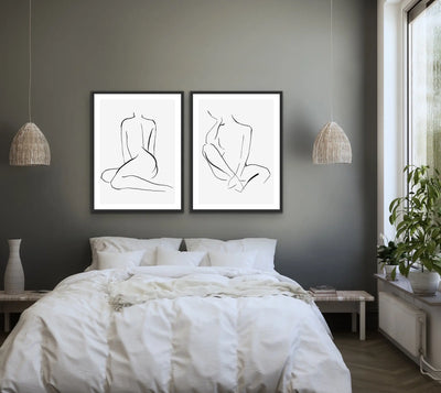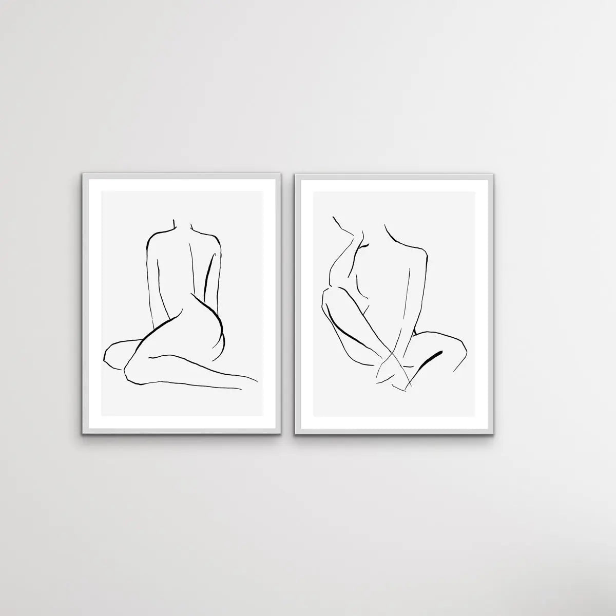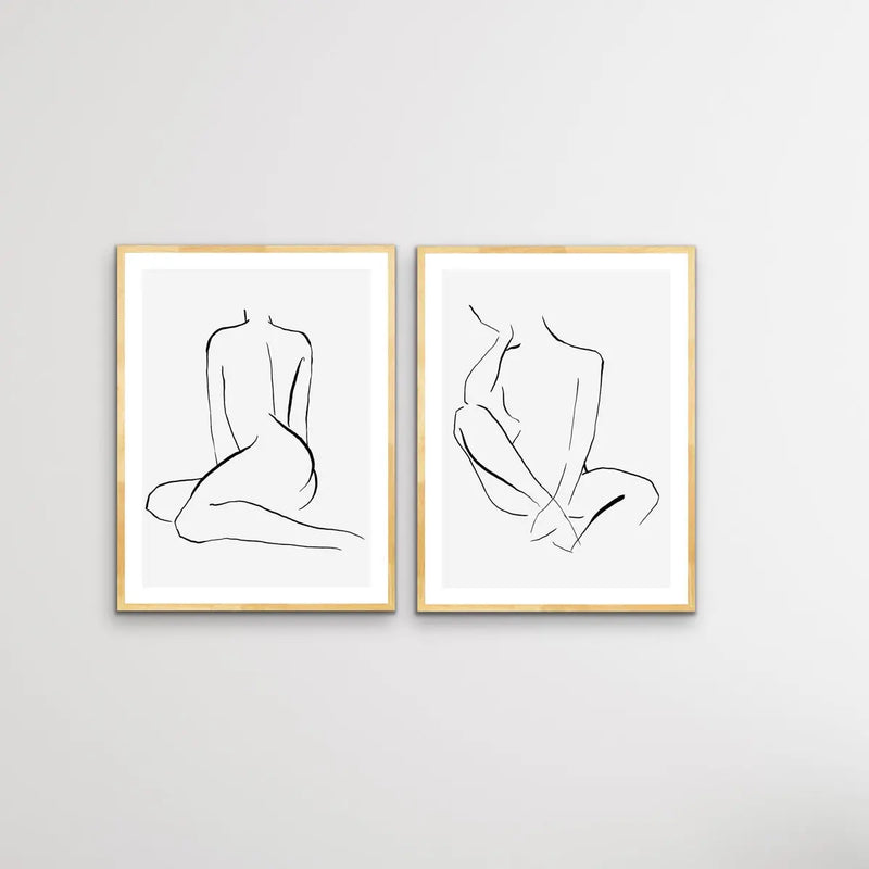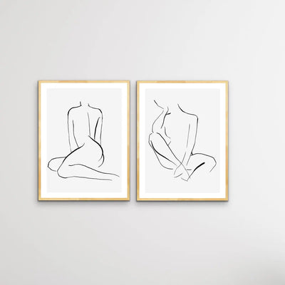 This gorgeous print set features two simple, elegant line drawings of the female form rendered in black lines.