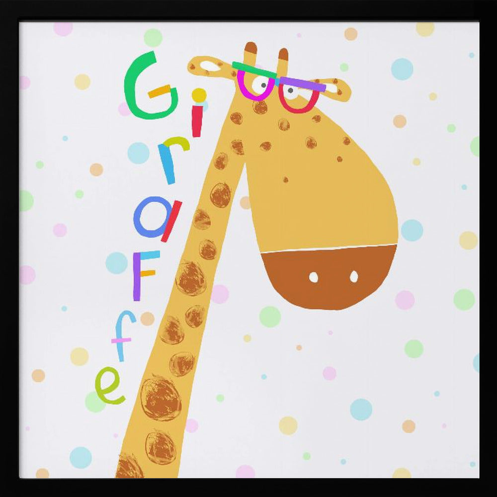 Cute Giraffe Wearing Glasses with Colorful Text by Carla Daly by Carla Daly