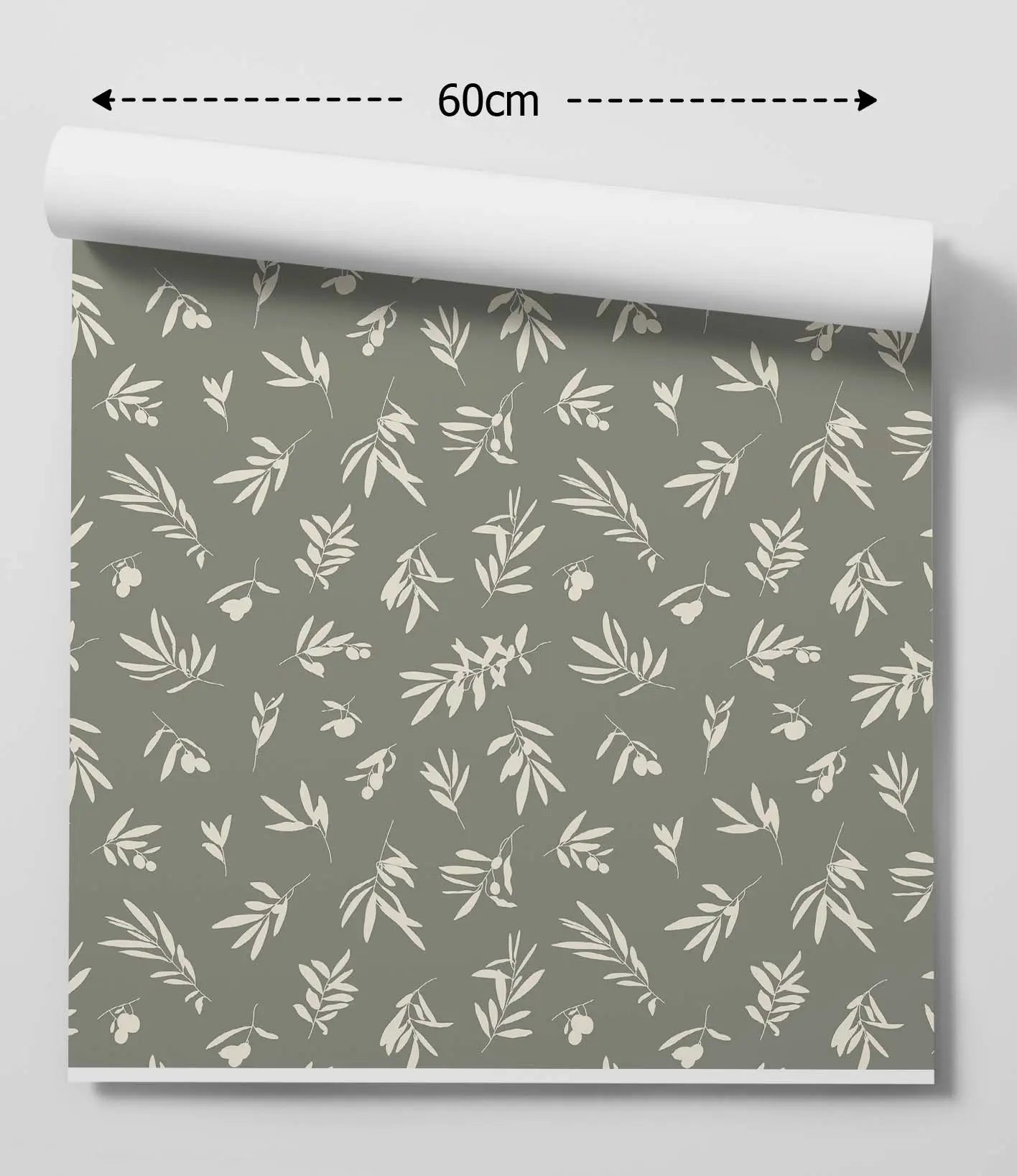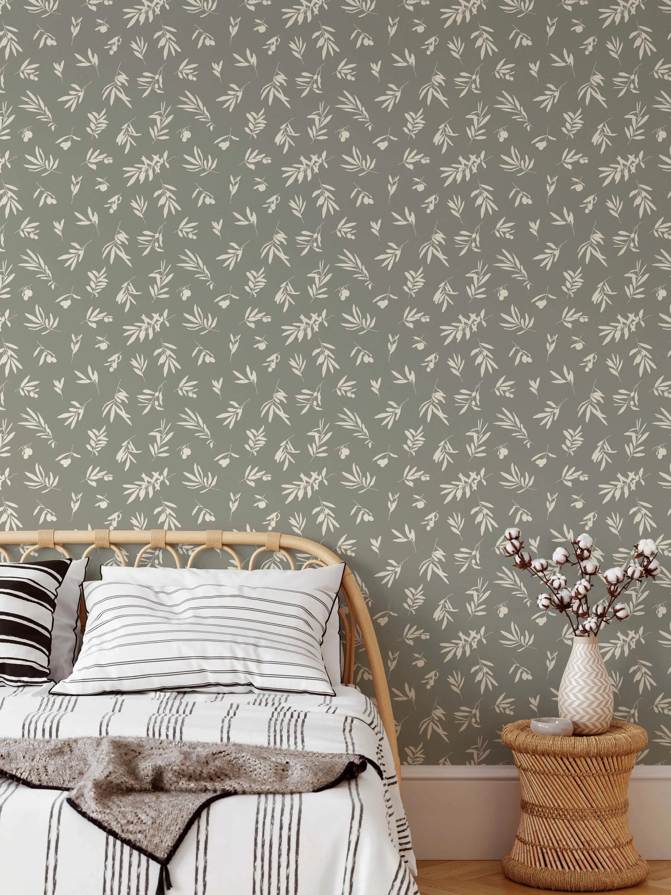 'Harriet' - Vintage White and Green Leaf Removable Wallpaper