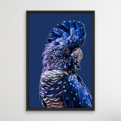 This beautiful black cockatoo isone of the prints from our two piece Black cockatoo wall art set, but he's so well-loved we've decided to offer him as a solo print on a classic navy blue background.