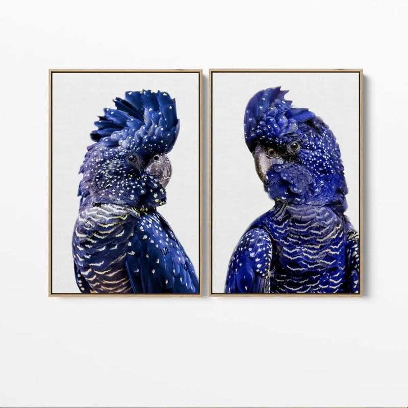 Black cockatoos are a well-loved and beautiful bird, moved by many Australians. They look beautiful hung side by side as Framed Canvas Print wall art, or as Art Prints in your favourite frames.
