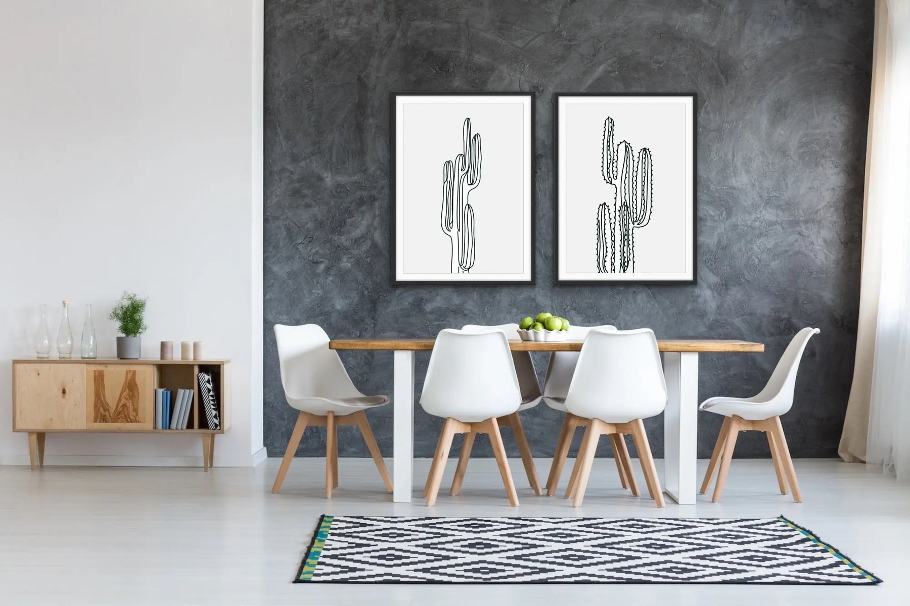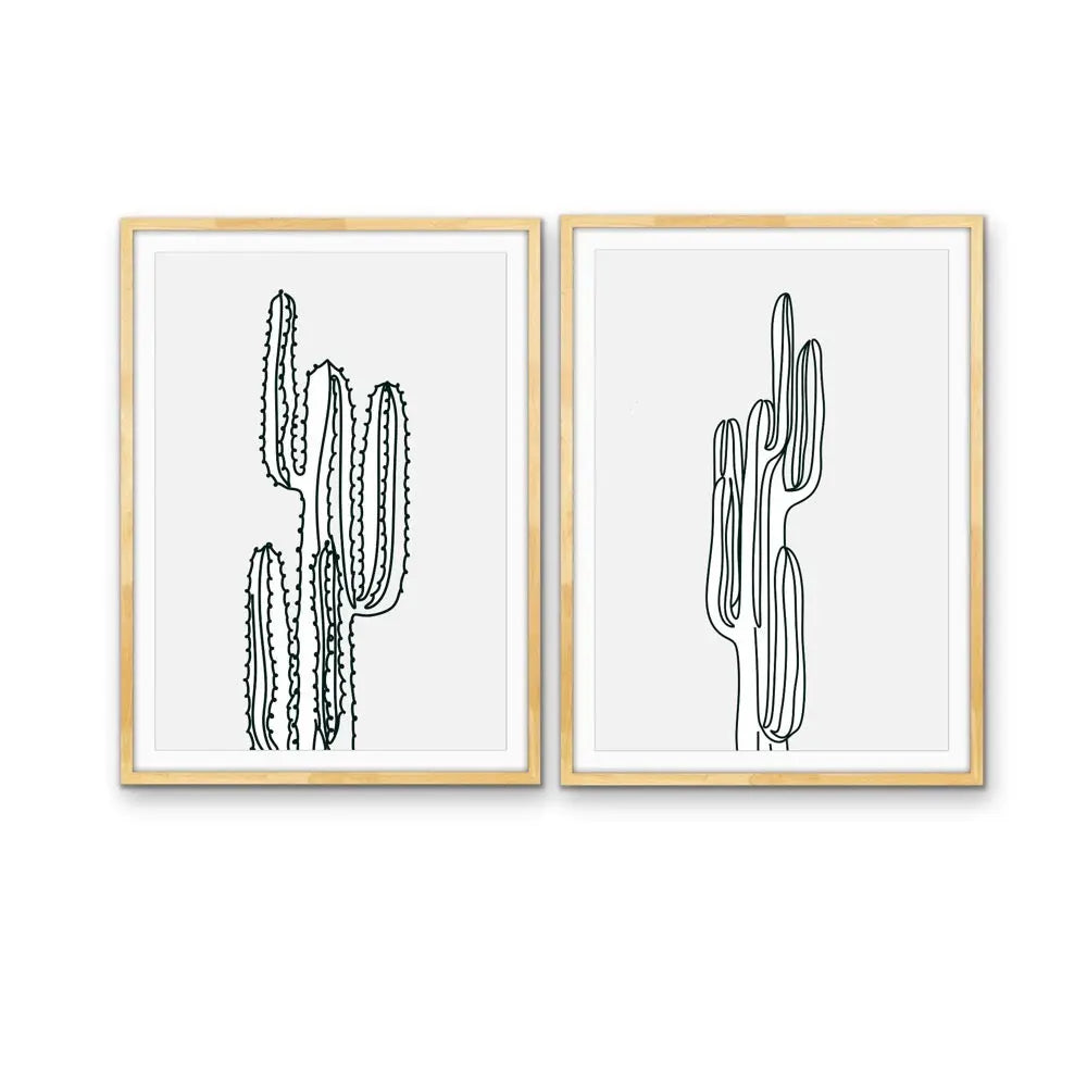These fun cactus line drawings are contemporary and simple, with a black and white colour scheme.