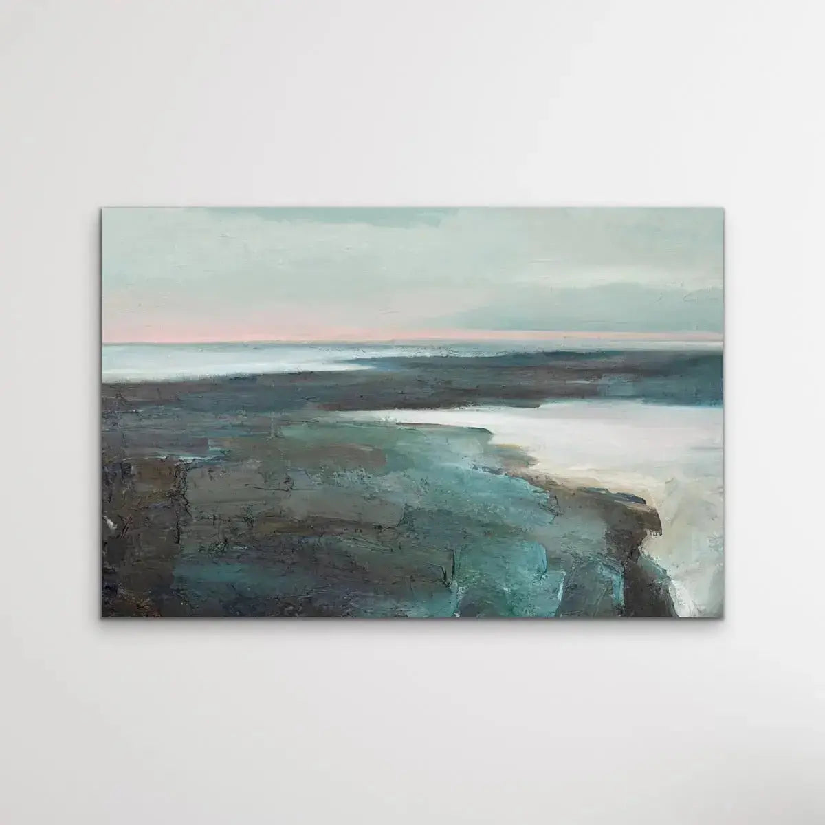 Abyss is an evocative green and pink artwork which conjures up memories of far-away shorelines under rising suns...