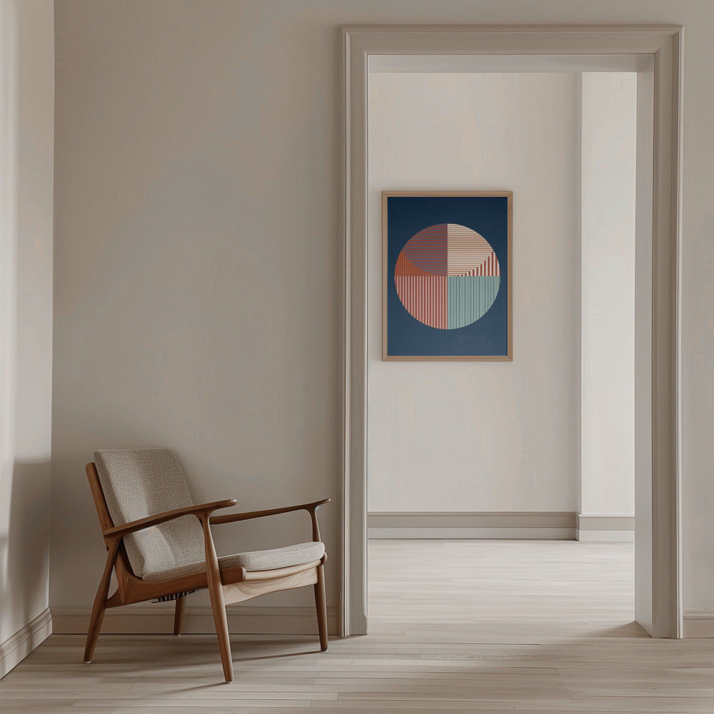Explore our many print options for Abstract Geometric Art With A Circular by artist Elena Ristova.
