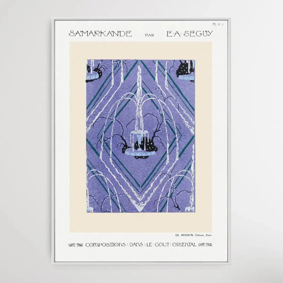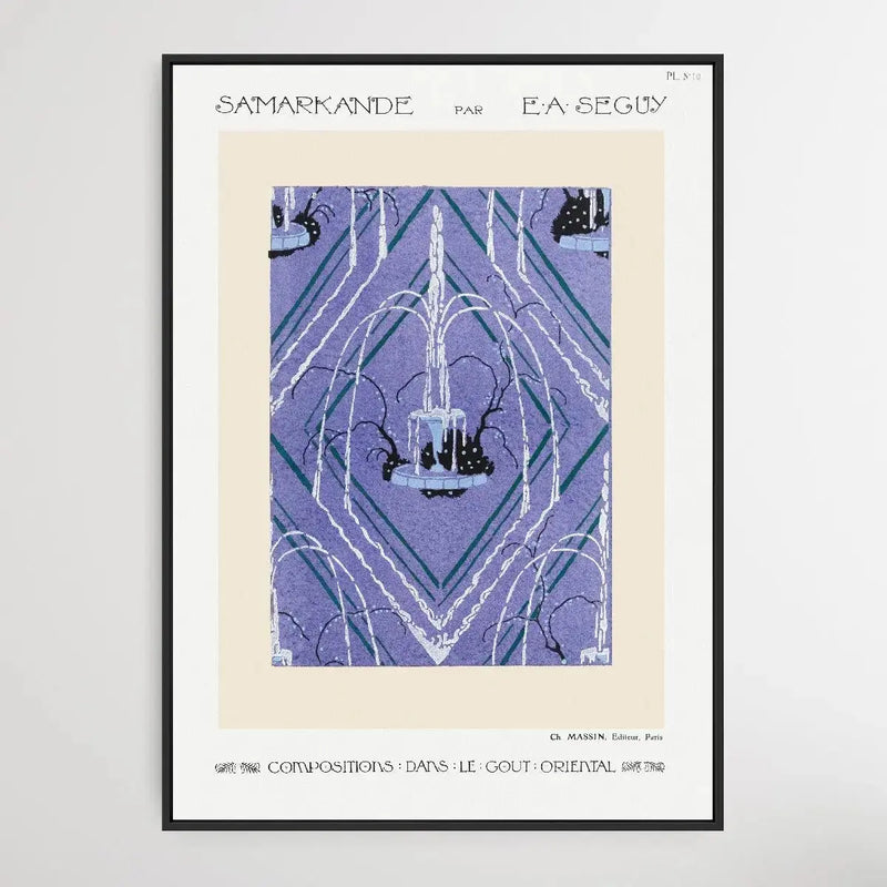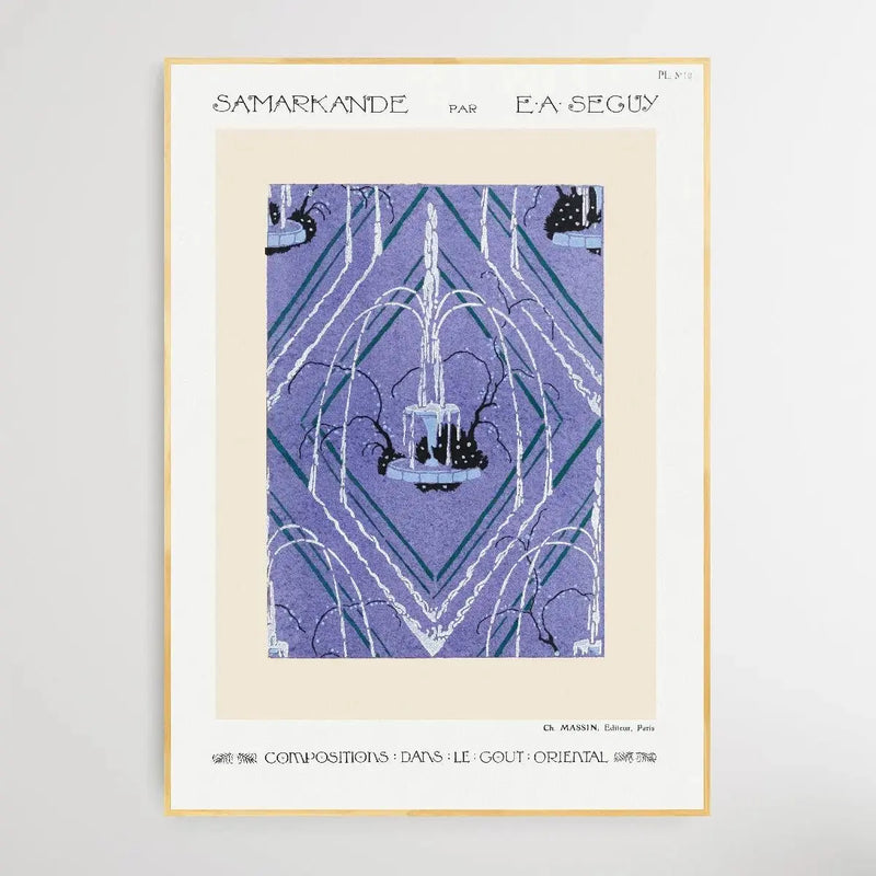 Art Deco fountain pattern pochoir print in oriental style. Original from the 1914 edition of Samarkande: 20 Compositions en couleurs dans le Style oriental" (Samarkand: 20 Color Compositions in the Oriental Style) by E. A. Séguy.