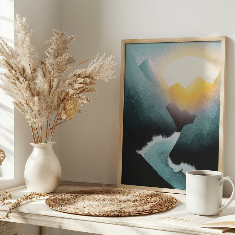 Unframed Poster Prints: The most cost-effective option, your artwork will be printed on good-quality satin paper with a medium level of sheen and delivered for you to pop into your own frame.