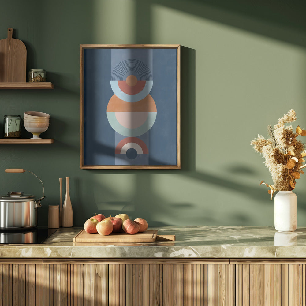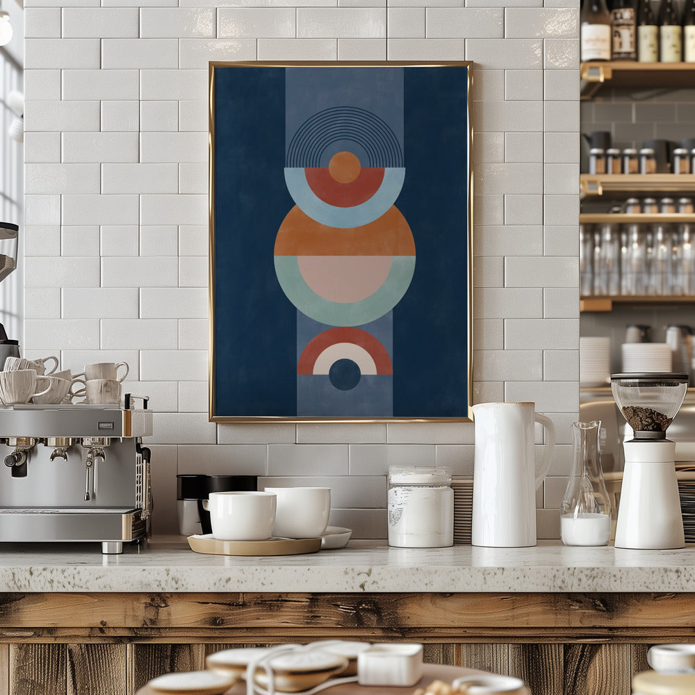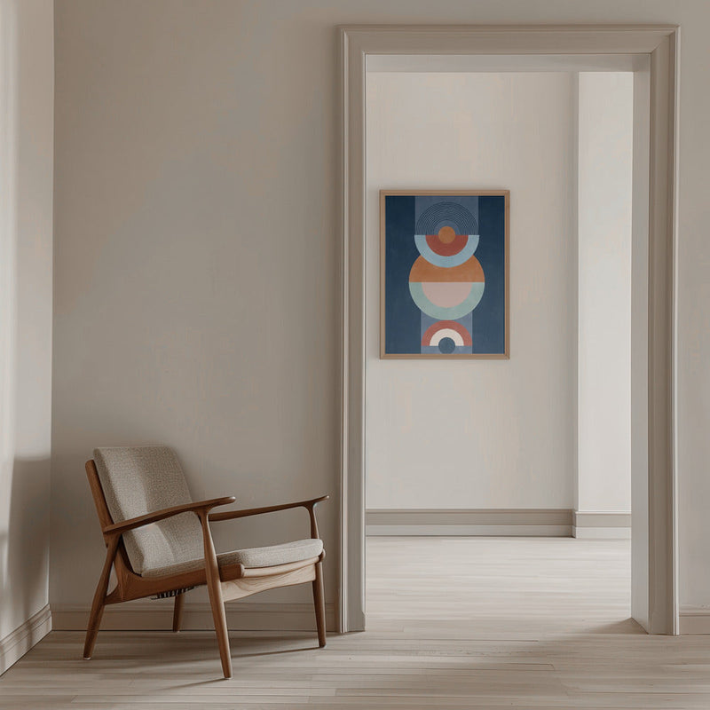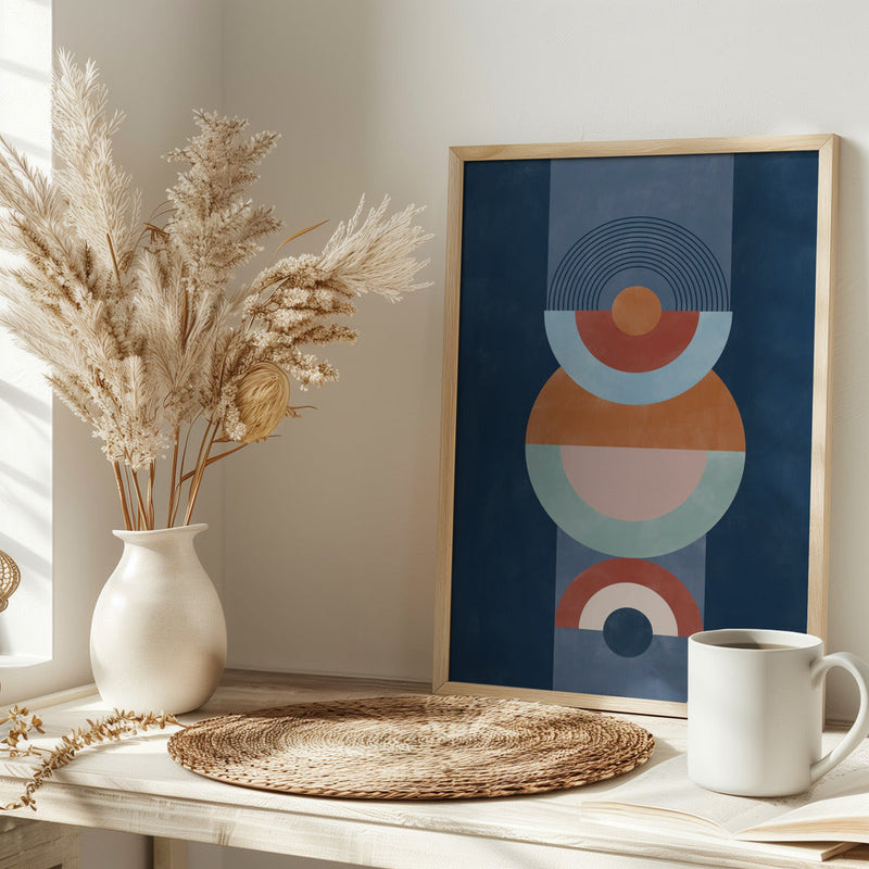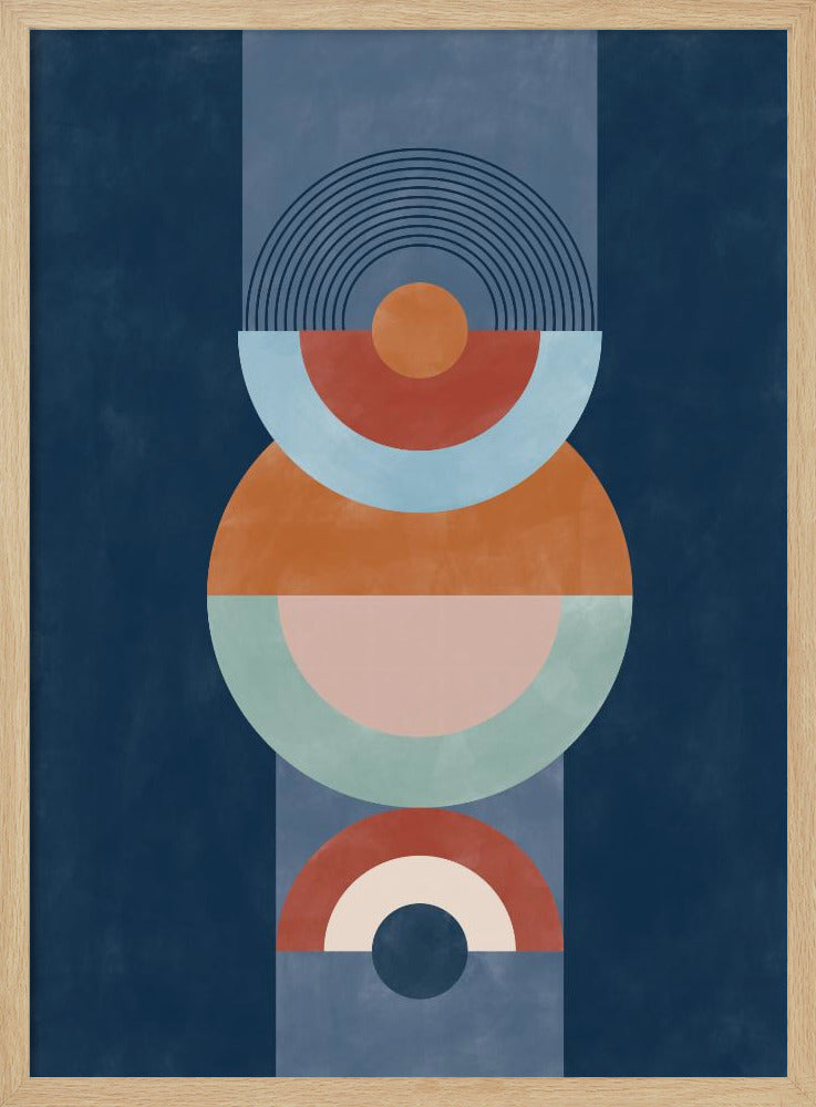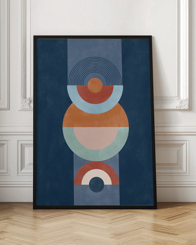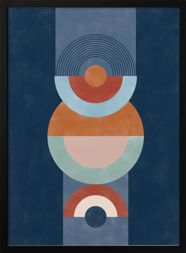 Explore our many print options for Concentric Circles And Semi-Circles In Blue by artist Elena Ristova.