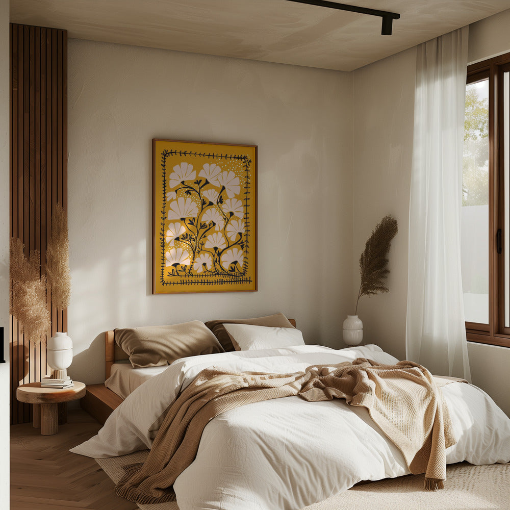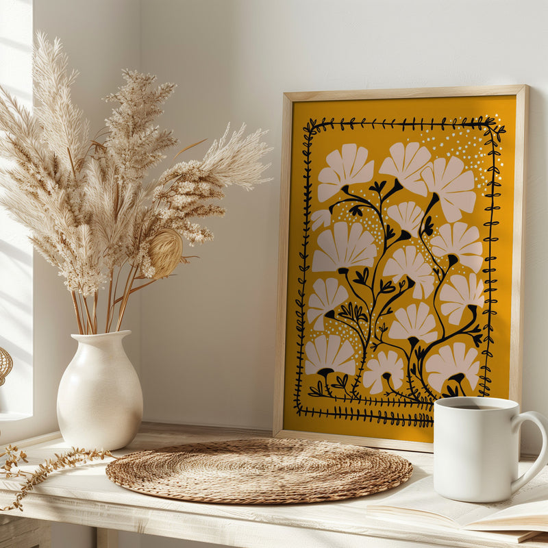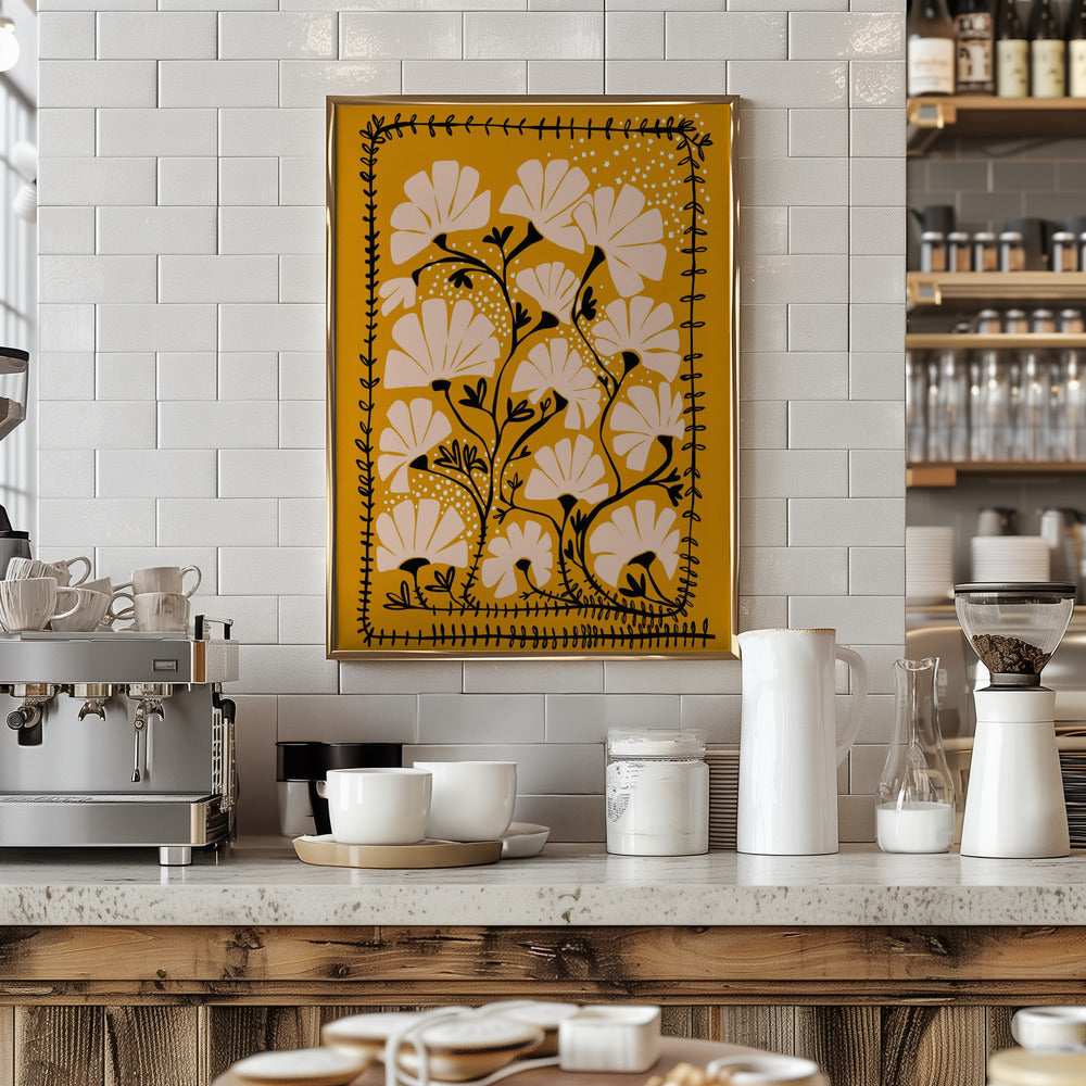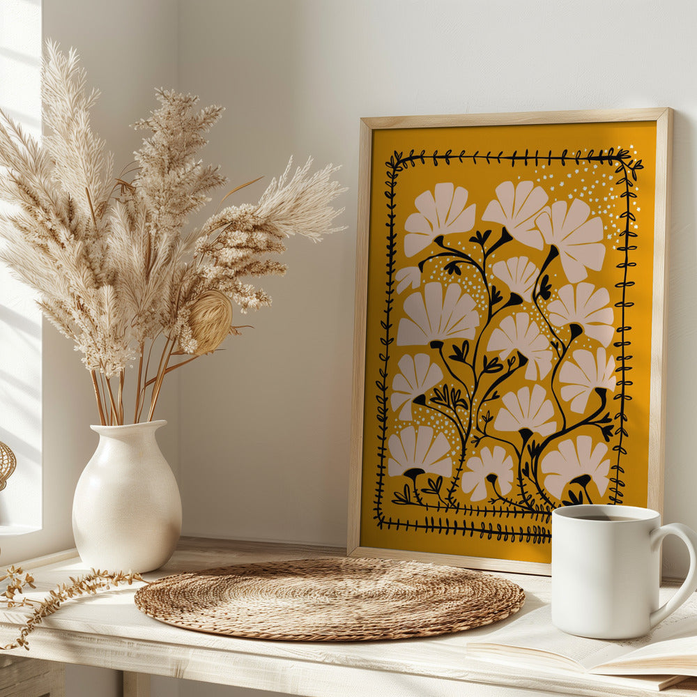 Explore our many print options for Ever blooming good vibes mustard yellow by artist Annick.