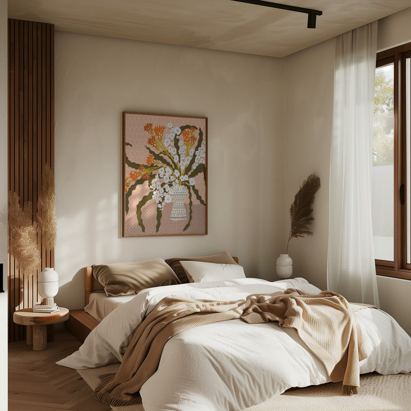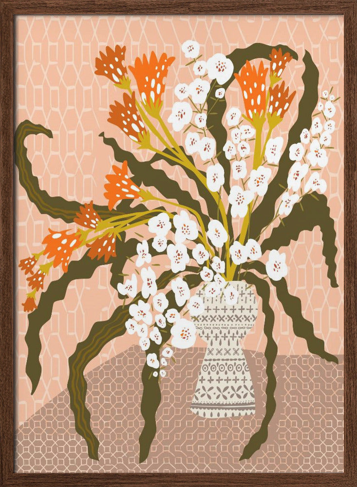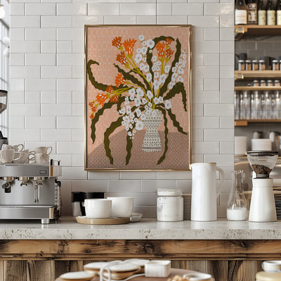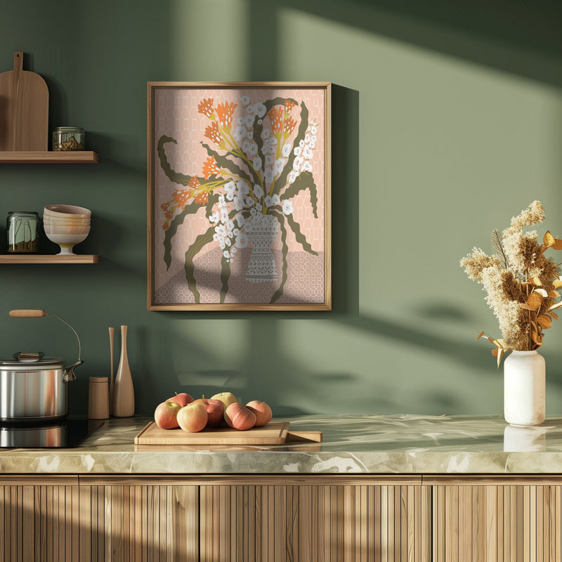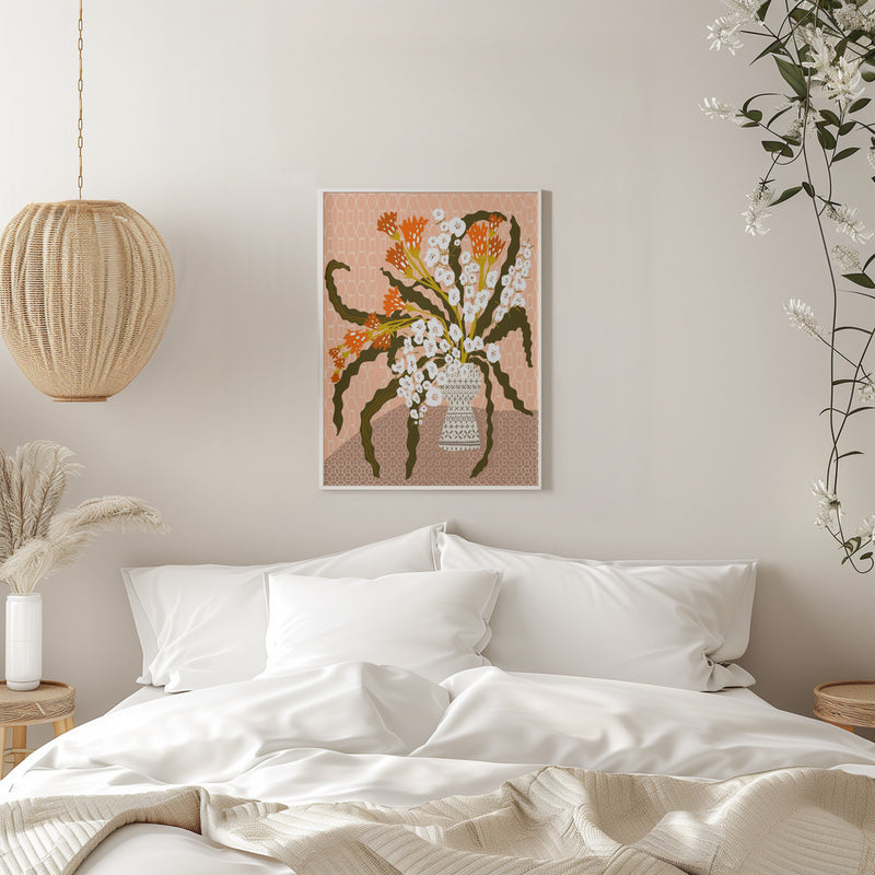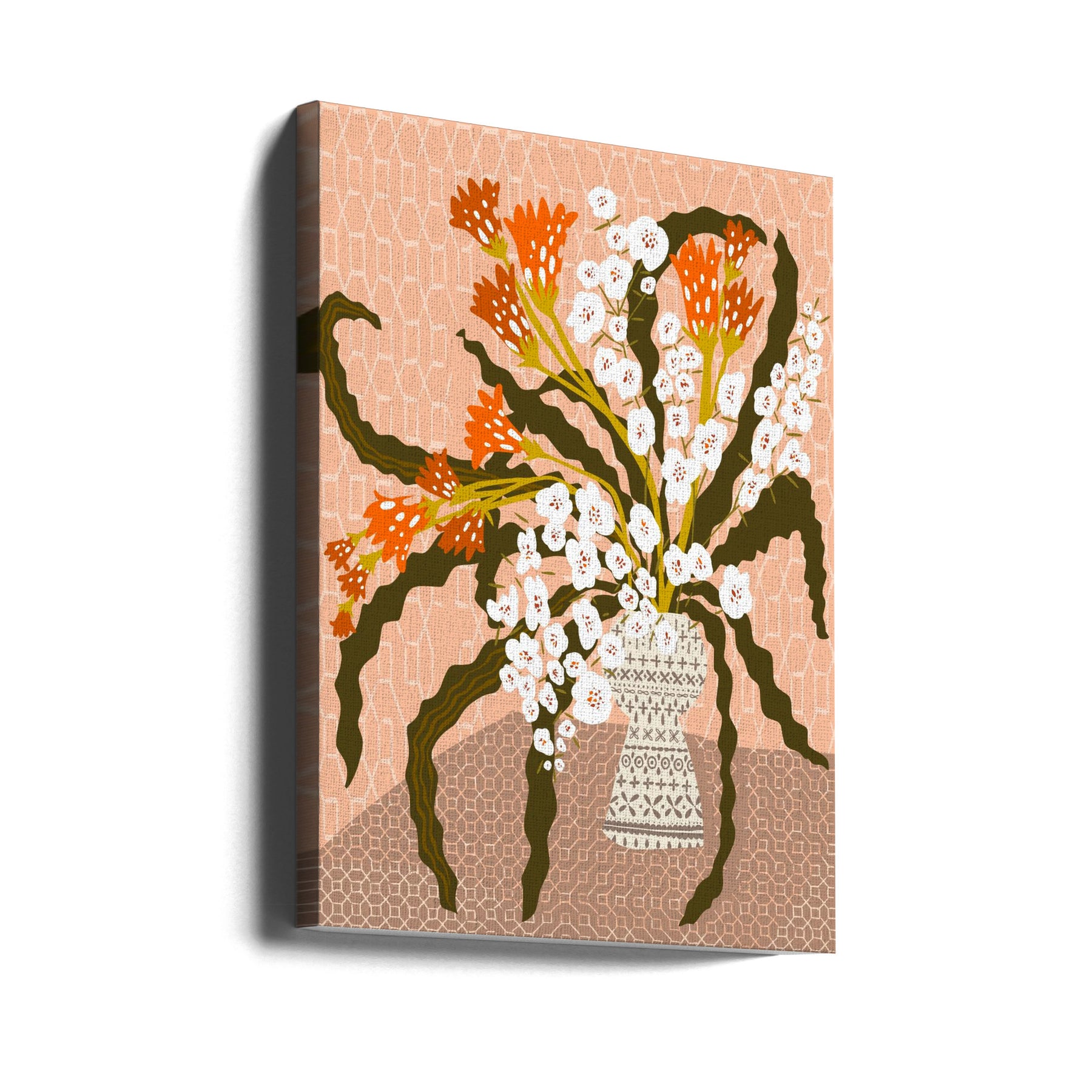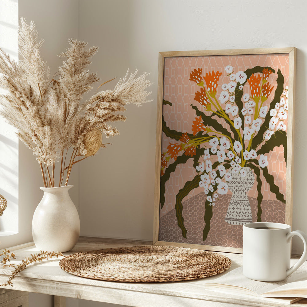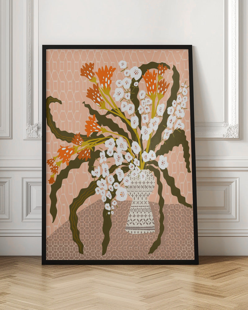 Explore our many print options for Floral contemporary still life peach fuzz by artist Annick.
