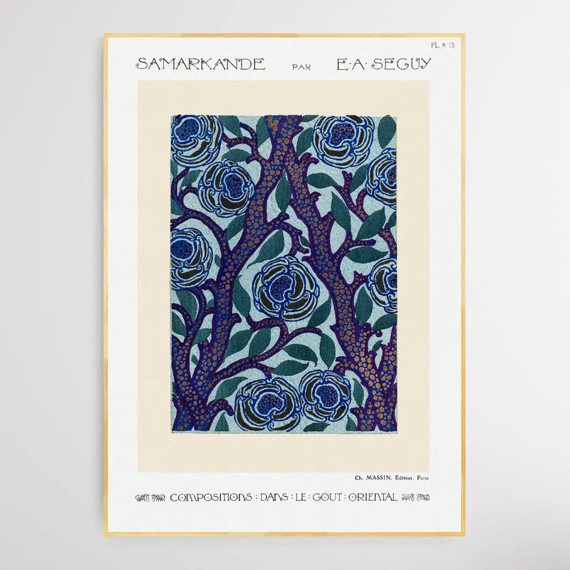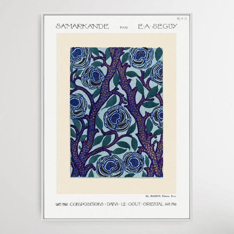 Flower pattern Art Deco stencil print in oriental style. Original from the 1914 edition of Samarkande: 20 Compositions en couleurs dans le Style oriental" (Samarkand: 20 Color Compositions in the Oriental Style) by E. A. Séguy.
