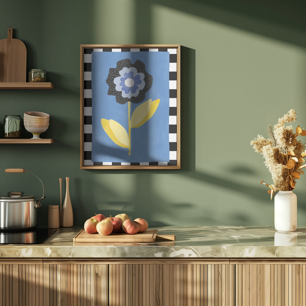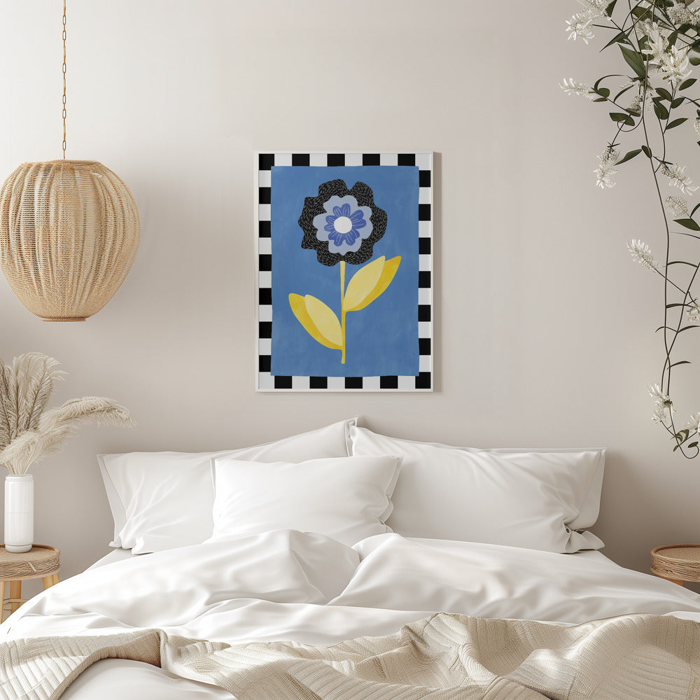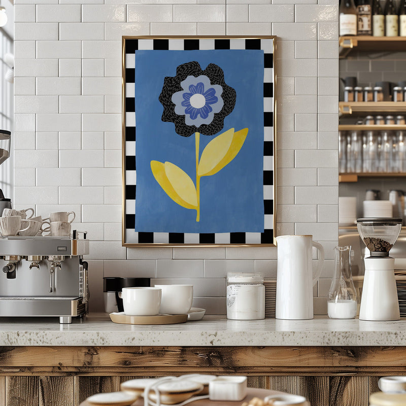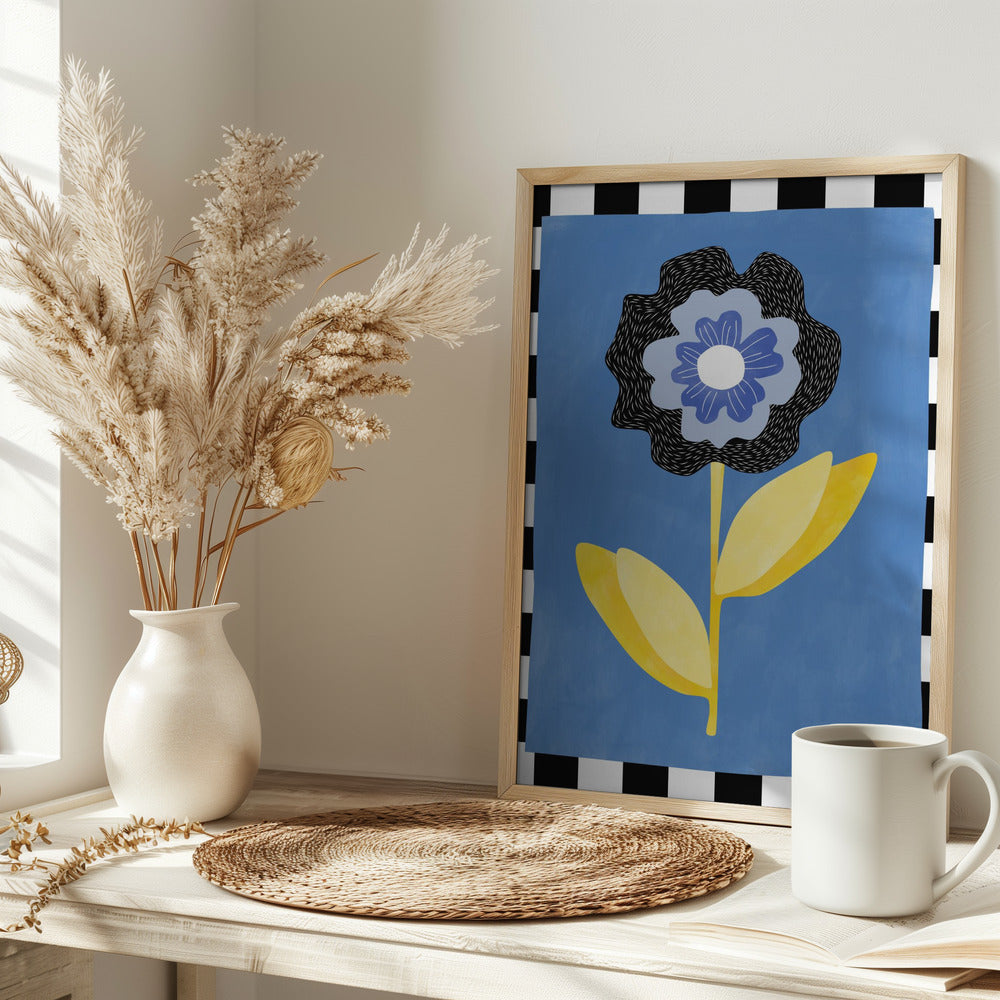 Explore our many print options for Flower with a Blue and Black Petal by artist Elena Ristova.