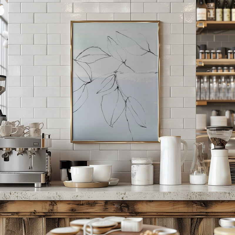 Explore our many print options for Leaves On Pastel Blue & Mint by artist Iris Lehnhardt.