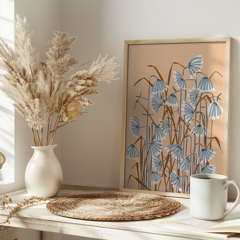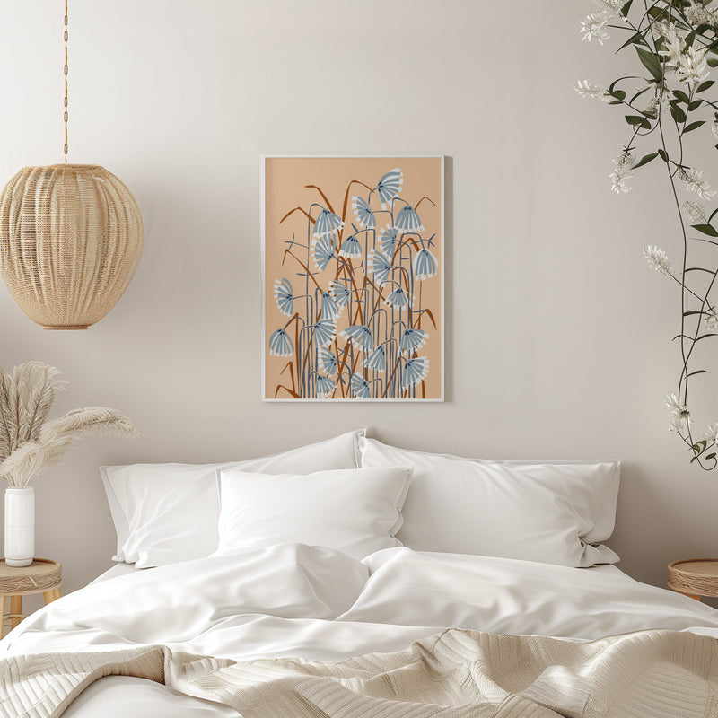 Explore our many print options for Linocut flower meadow peach fuzz by artist Annick.