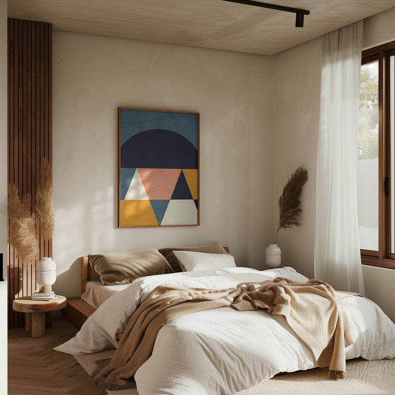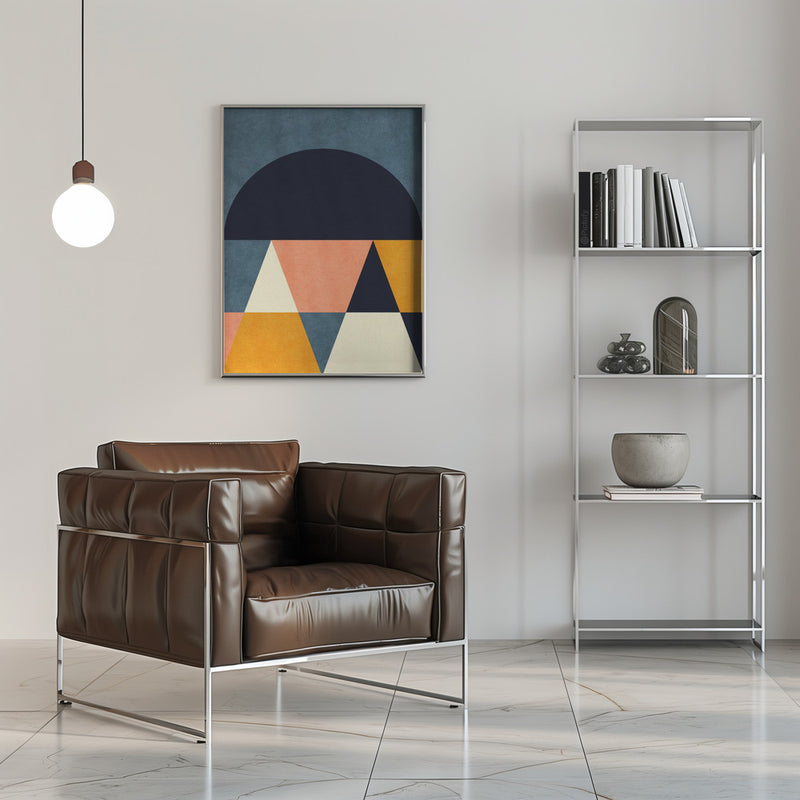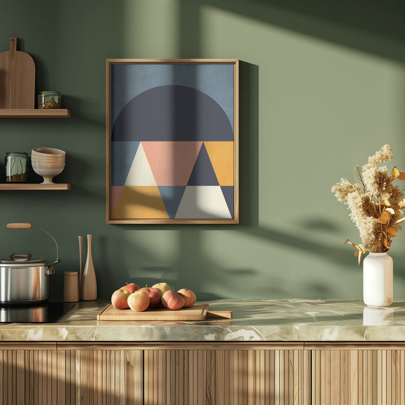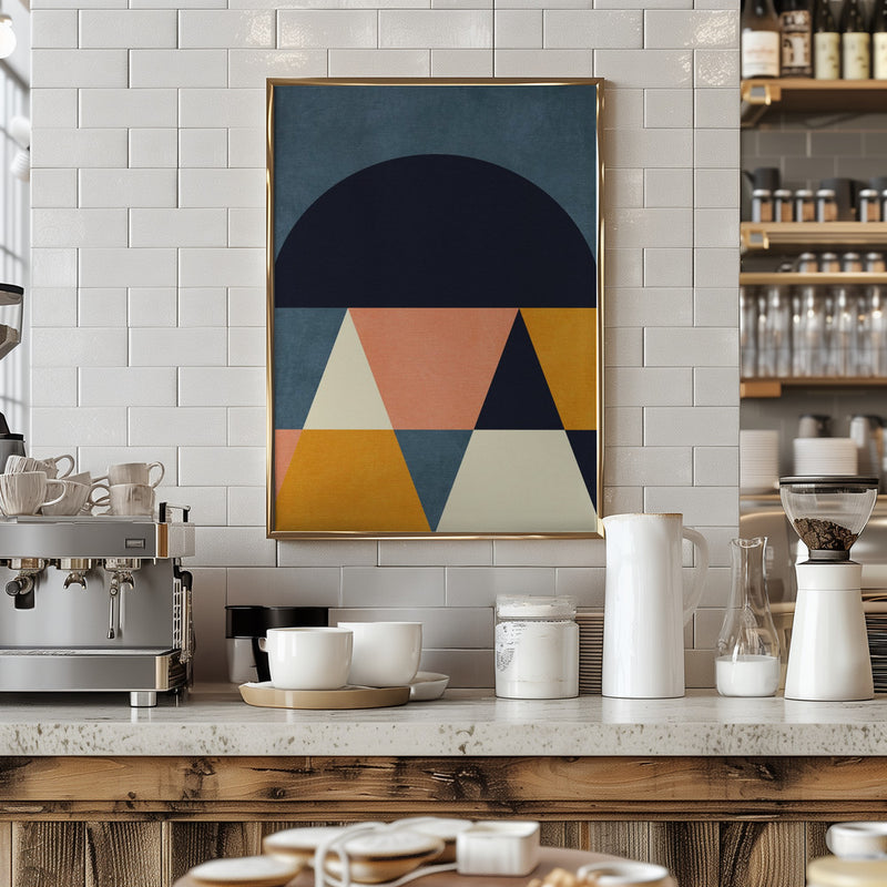 Explore our many print options for Rainbow Plus Shapes Blue Mustard4 by artist Ana Rut Bre.
