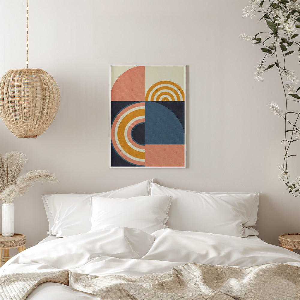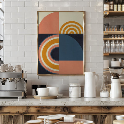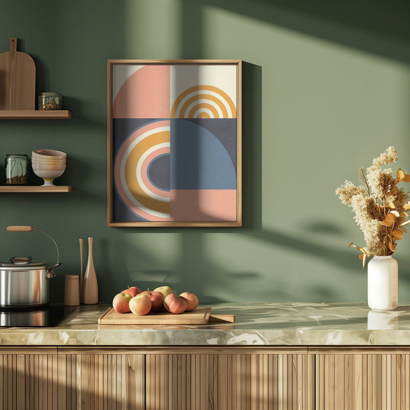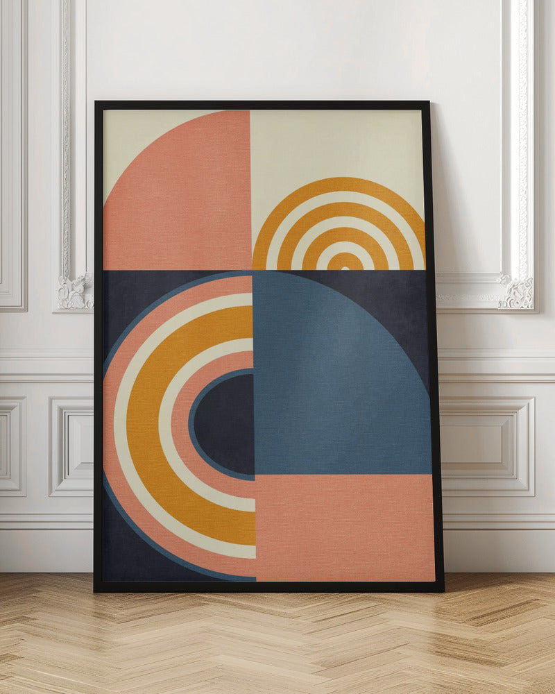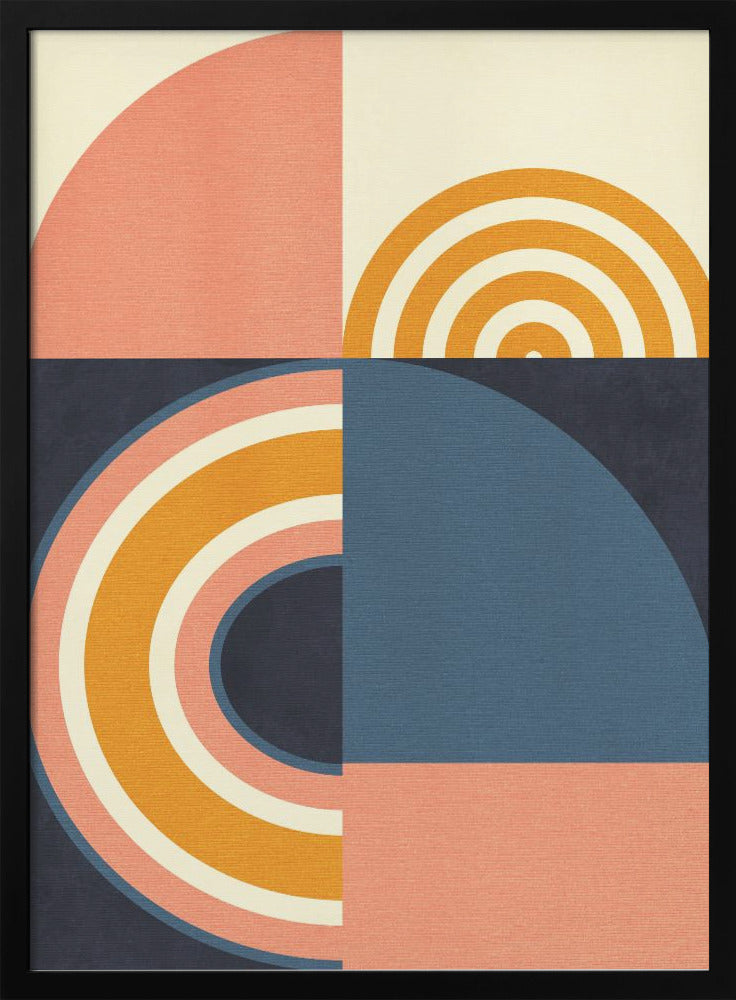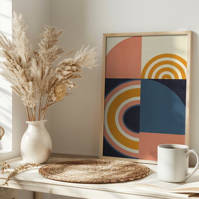 Explore our many print options for Rainbow Plus Shapes Blue Mustard9 by artist Ana Rut Bre.