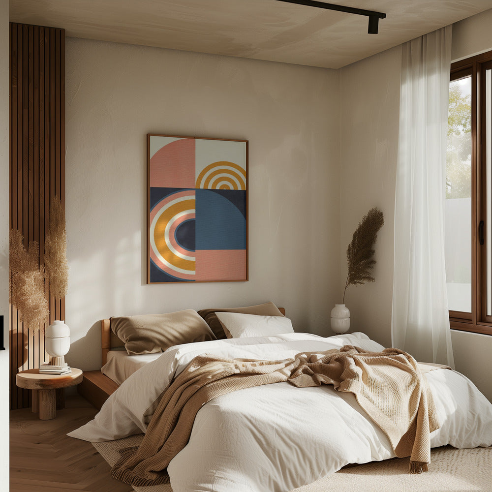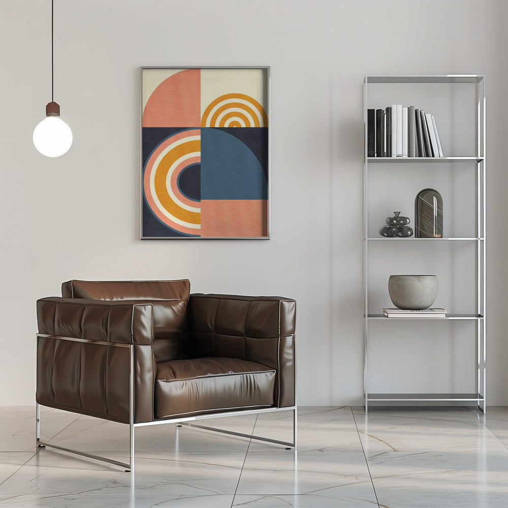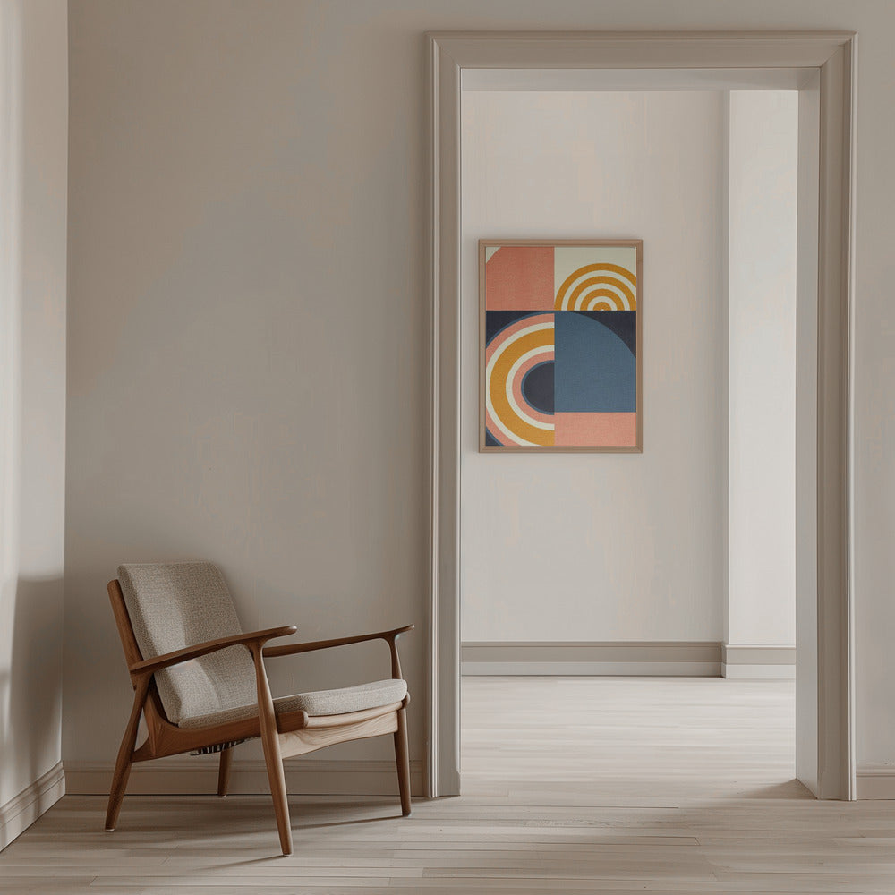Explore our many print options for Rainbow Plus Shapes Blue Mustard9 by artist Ana Rut Bre.