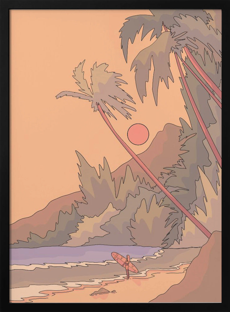 Framed Art Prints: Our framed art prints are printed onto a good quality textured art paper. A white border surrounds the design. A solid timber frame in one of four colours and a plexiglass front complete the piece.