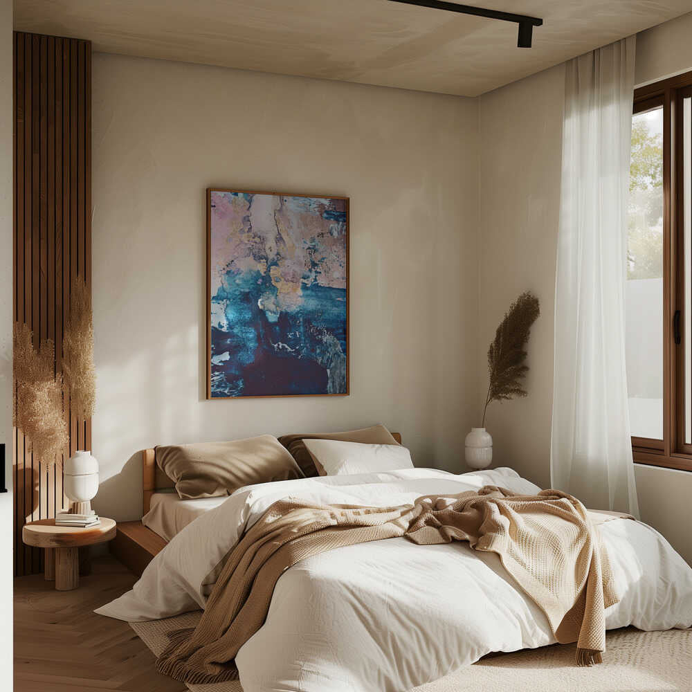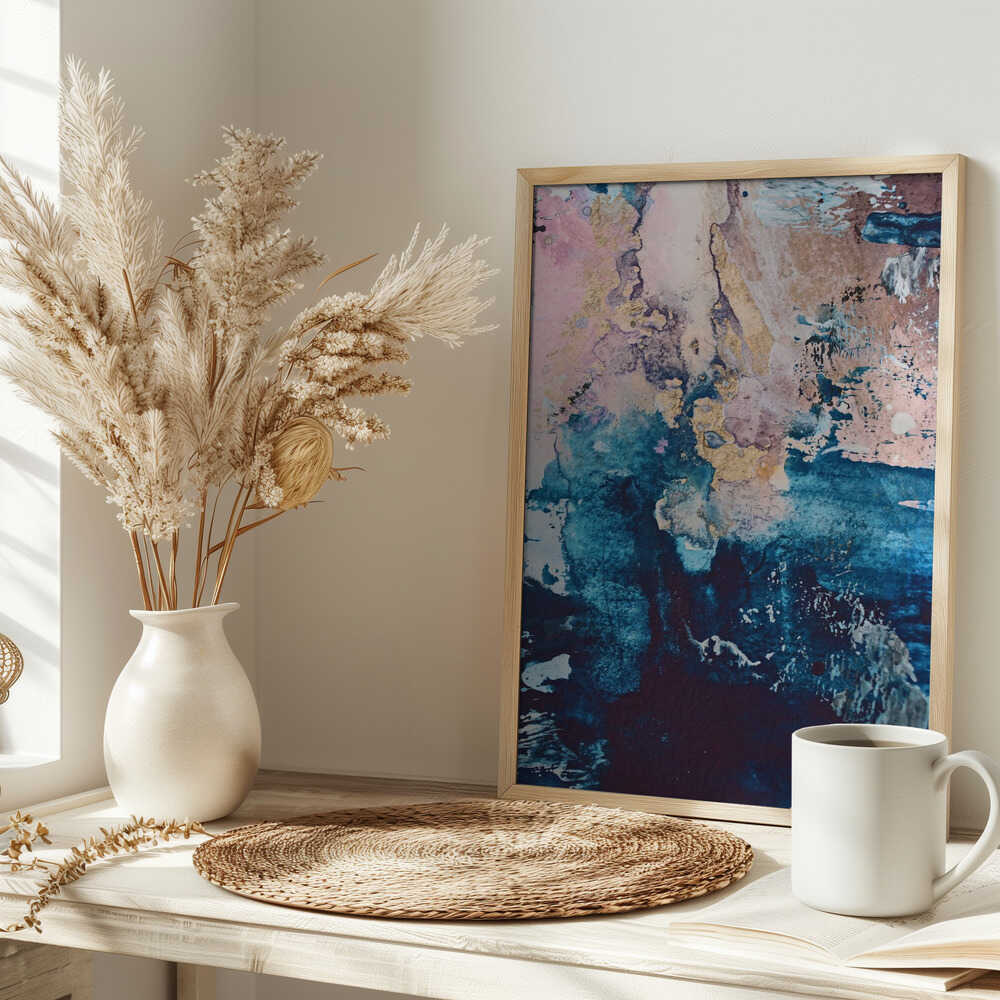 An Awesome Wave -Abstract Blue Pink Art Print Stretched Canvas Wall Art
