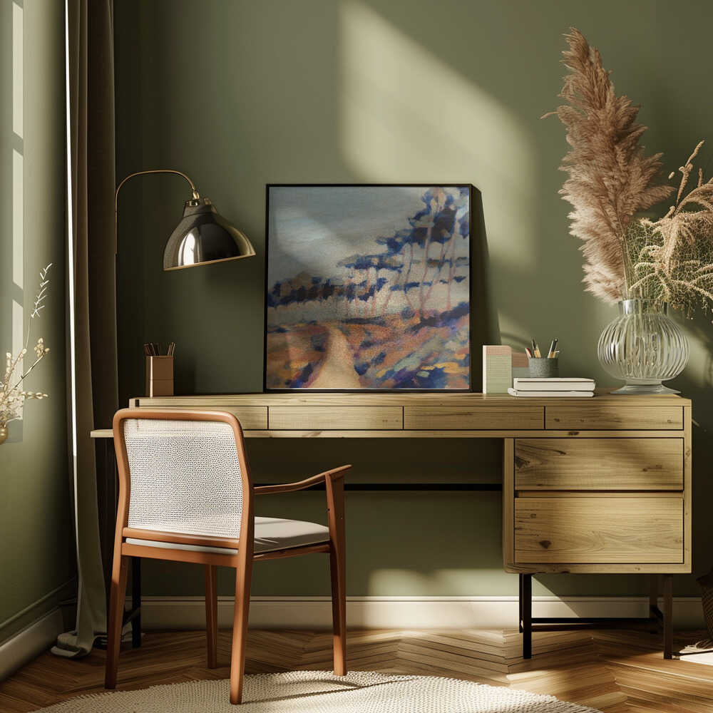 Inlet - Ochre Green Blue Boho Landscape Canvas or Art Print