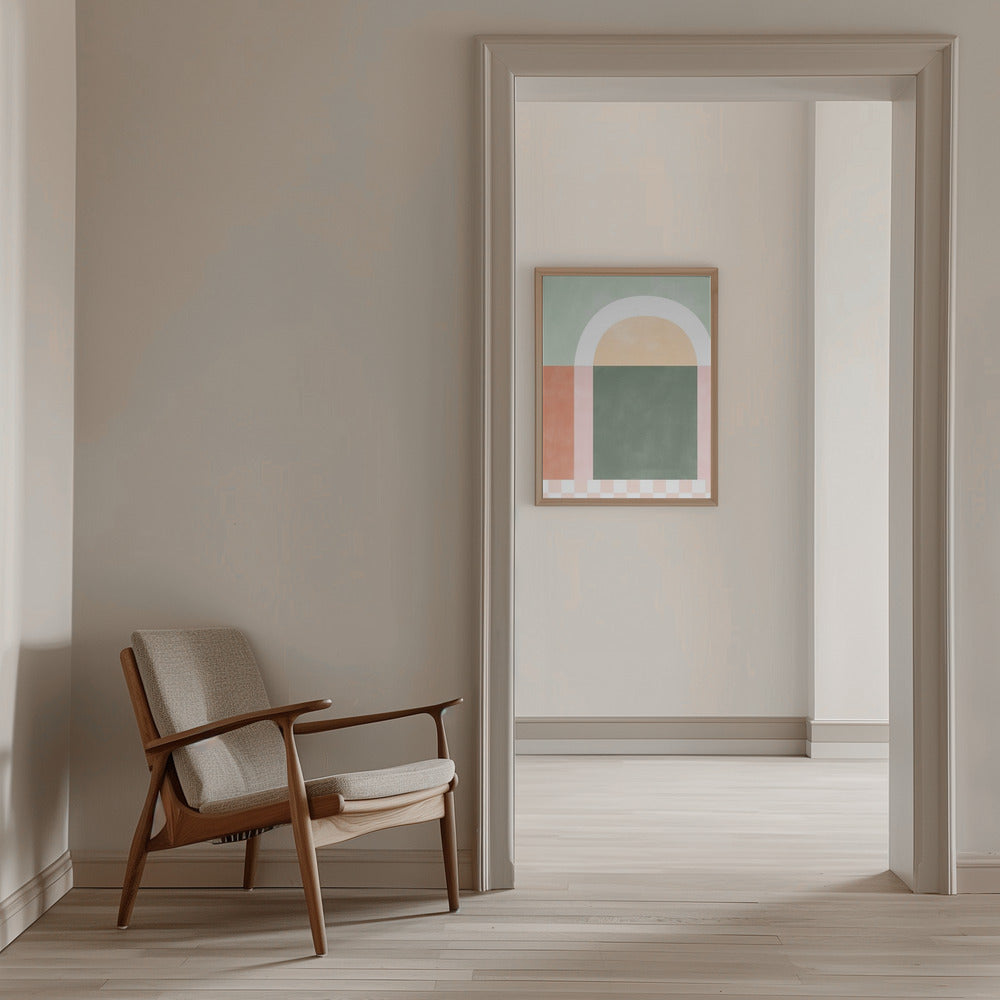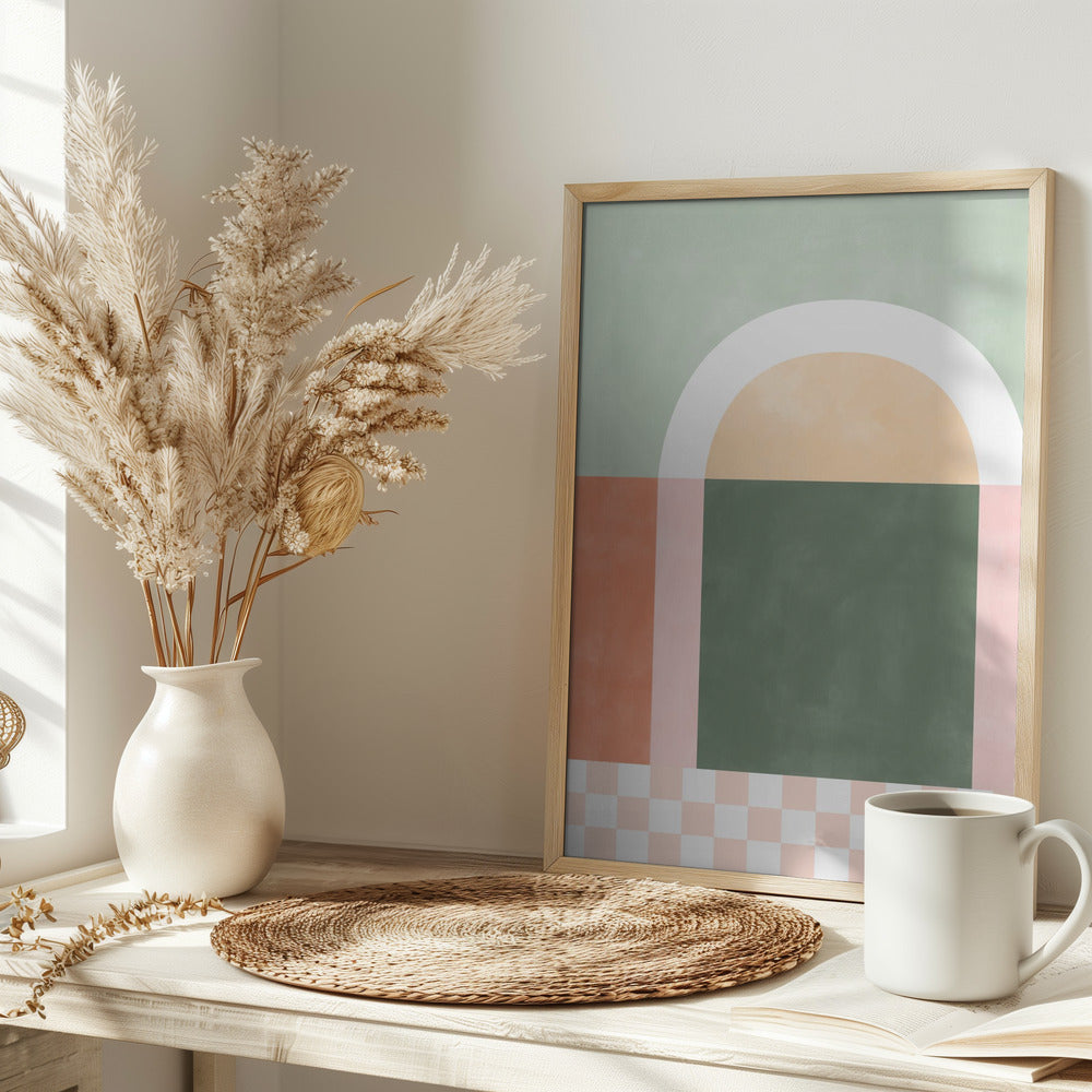 Explore our many print options for Geometric Composition With Pastel Colors by artist Elena Ristova.