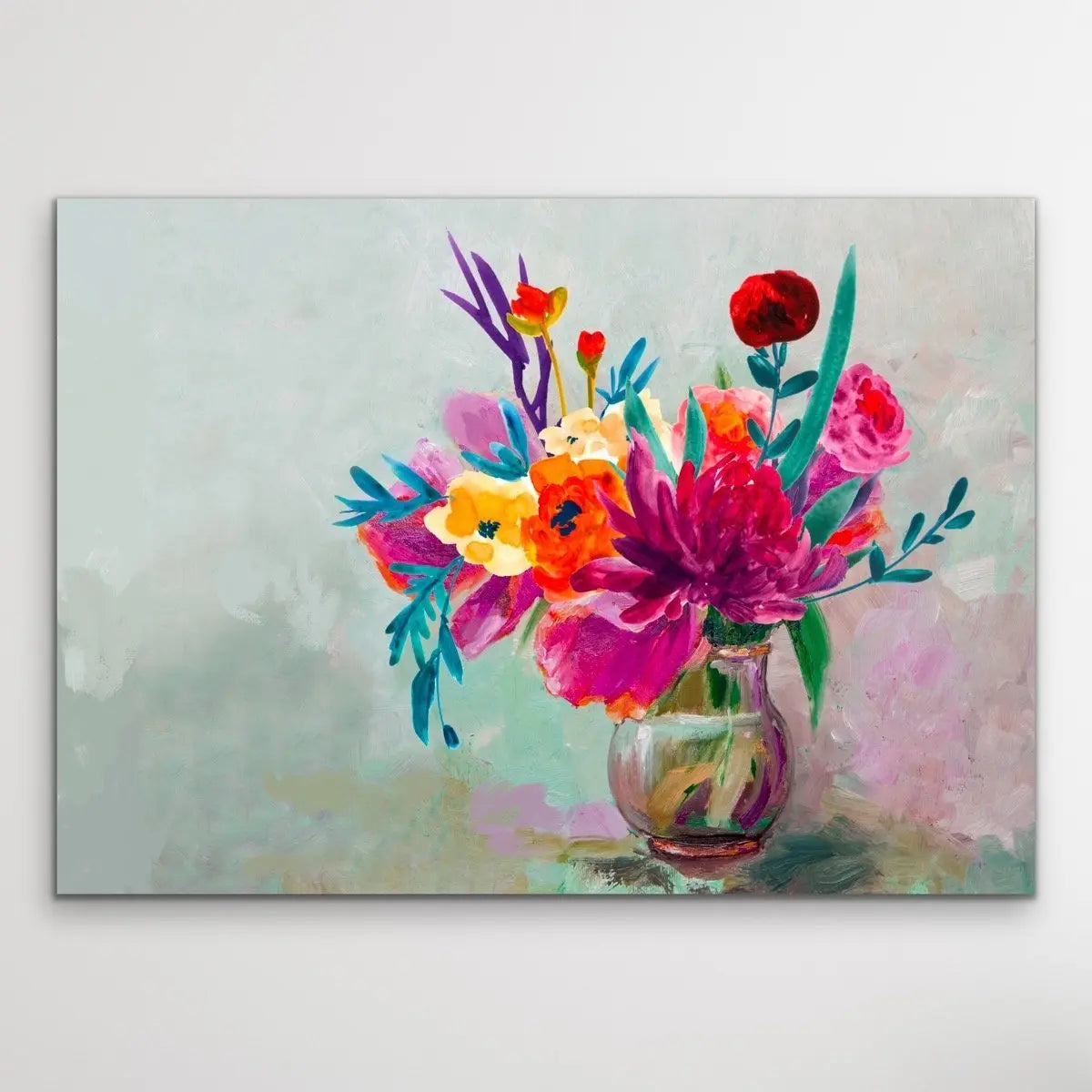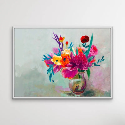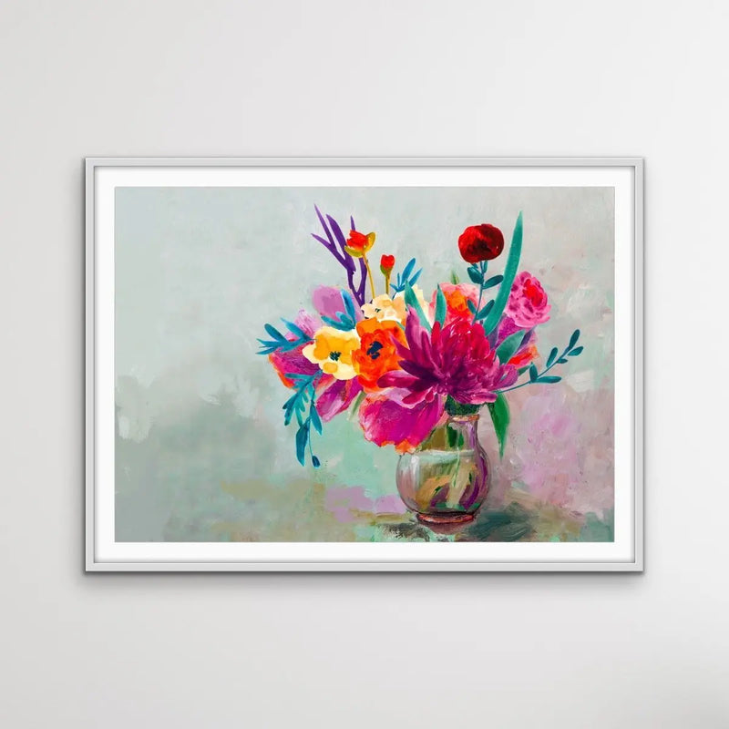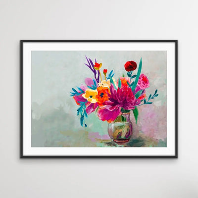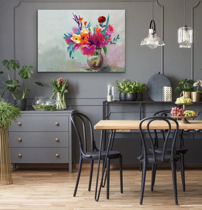 If you love colour and flowers, this might be the perfectpiece for you! This bright and bold bouquet of flowers has a hint of traditional still life about it - with a fun and contemporary twist.