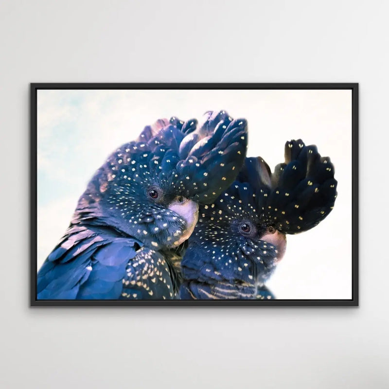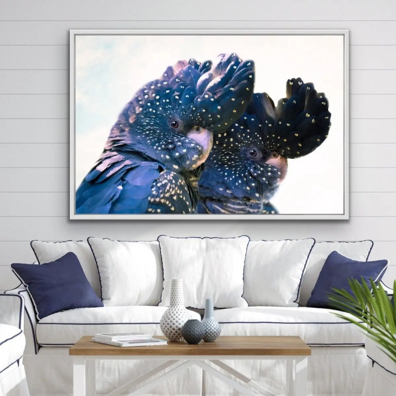 Black Cockatoo Pair - Framed Canvas Print Wall Art Print Red-Tailed Black Cockatoos