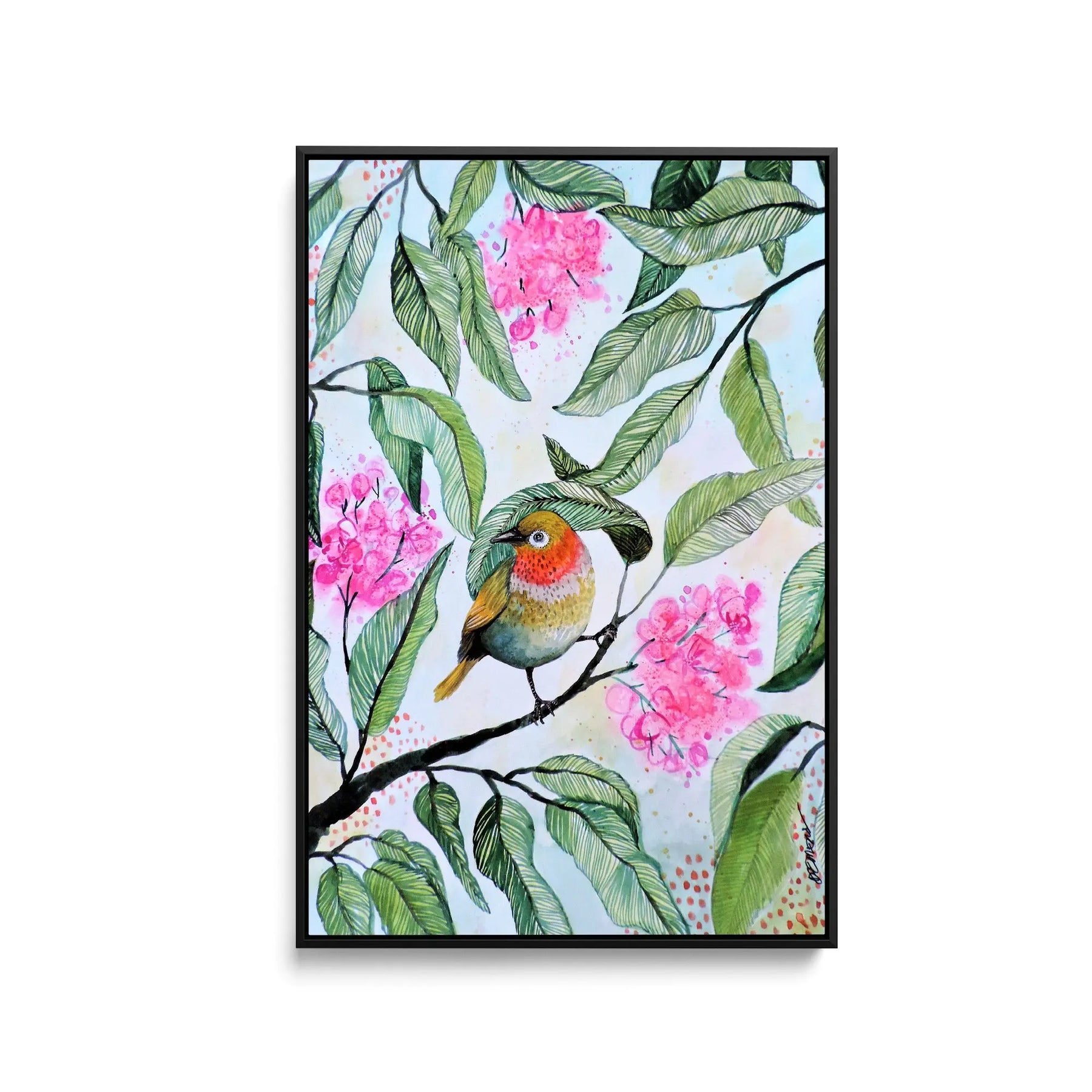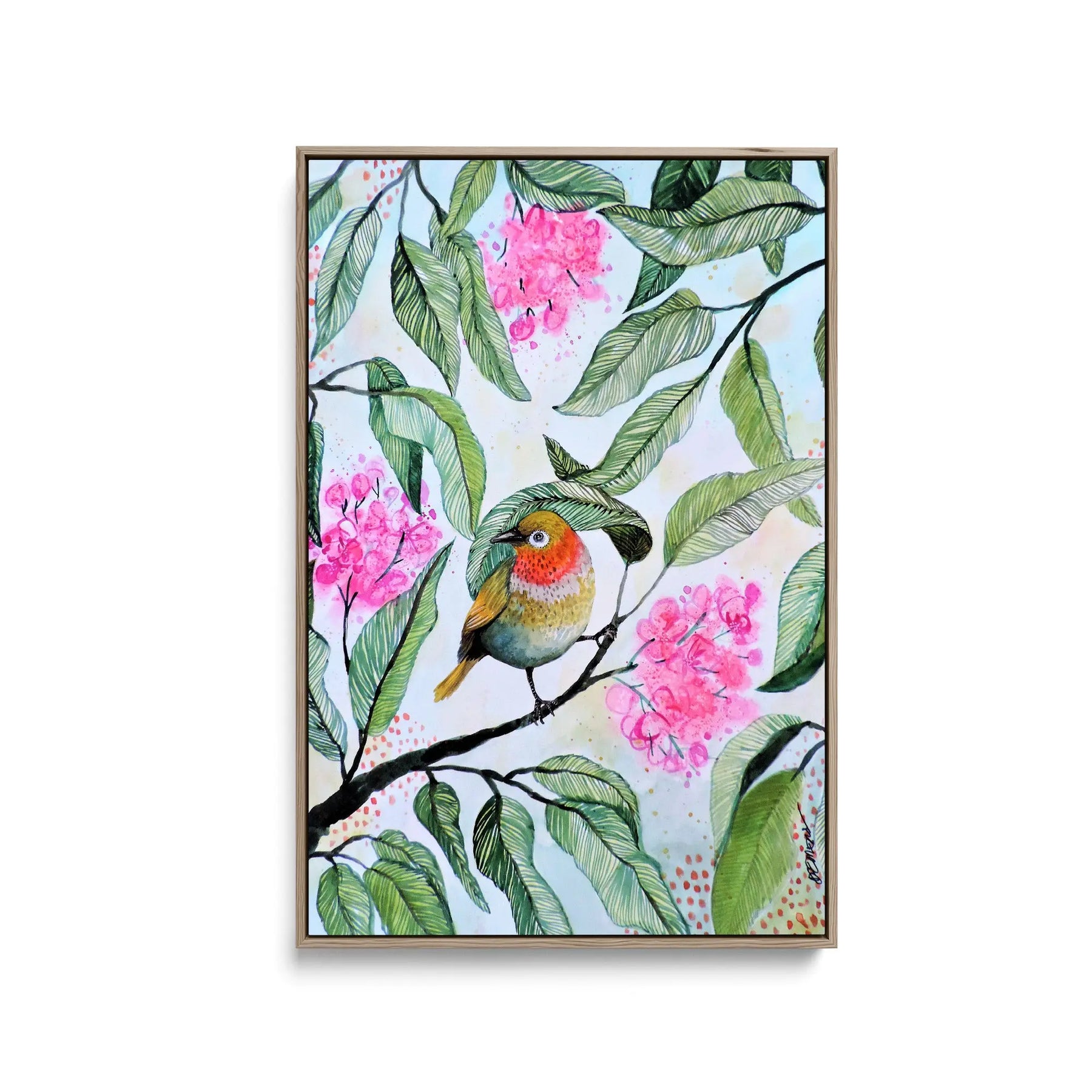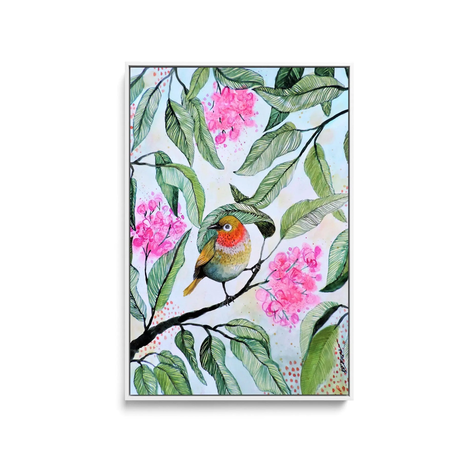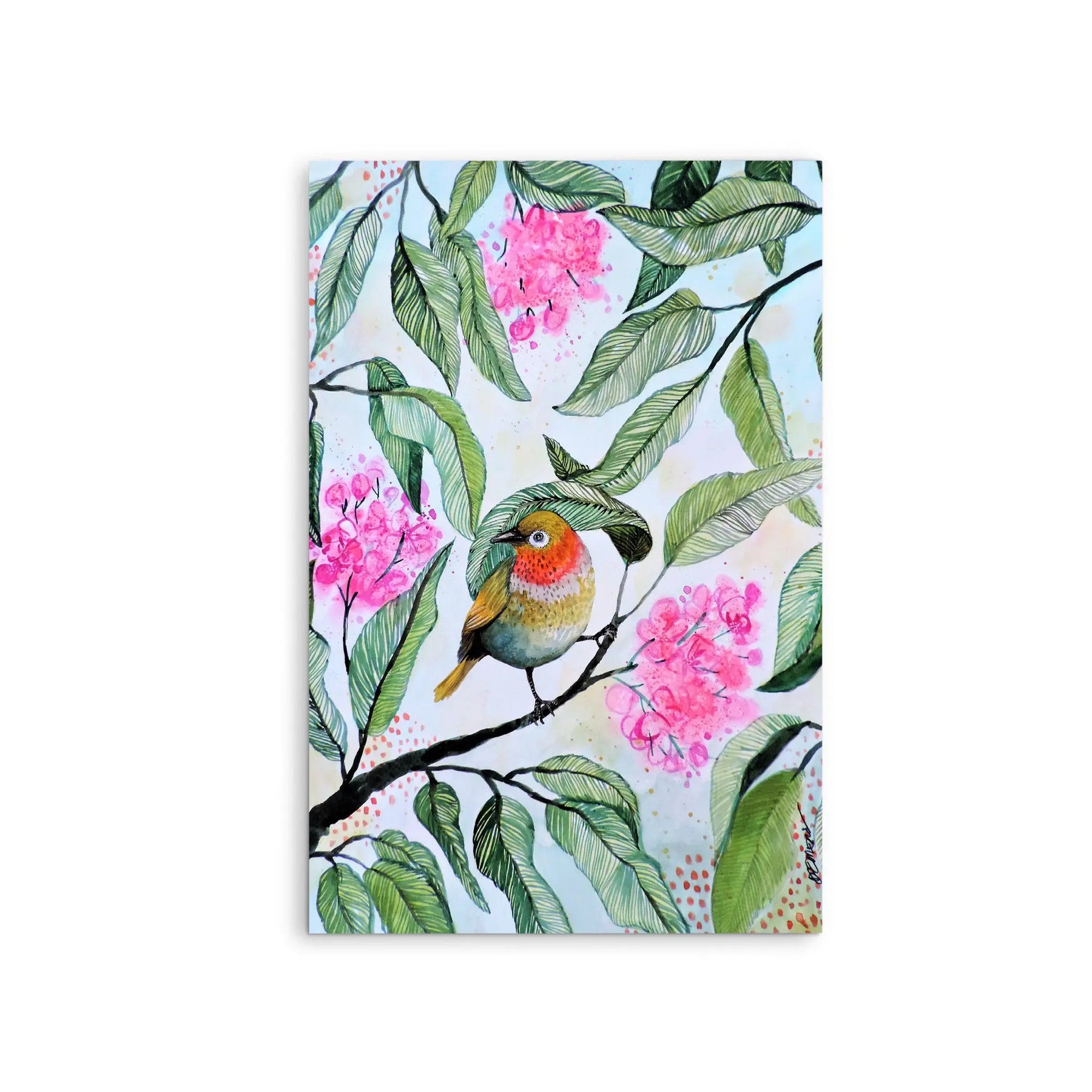 Sweet colours and one gorgeous little red-breasted robin make this piece by Sylvie Demers sing.